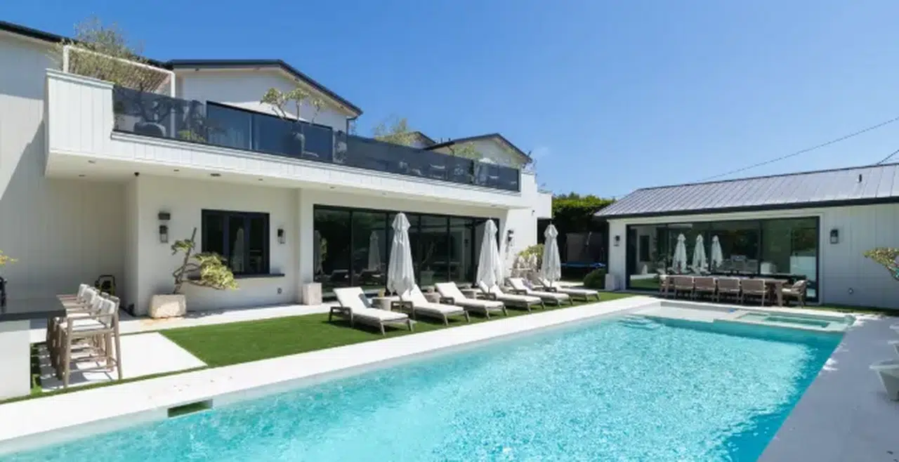 Los Angeles Brentwood’daki bu özel villada toplam beş yatak odası ve yedi banyo bulunuyor. Bunun yanı sıra evin bahçesinde ayrı bir konuk evi de yer alıyor. Konuk evinde bir yatak odası ve bir banyo bulunması, misafirler için ayrı bir yaşam alanı oluşturuyor.