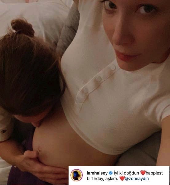 Aynı zamanda sevgilisi Aydın'dan hamile de olan Halsey, sevgilisinin karnını öptüğü fotoğrafı paylaşıp sevgilisini etiketleyerek, "İyi ki doğdun. Happiest birthday, aşkım" dedi. Paylaşım 2.7 milyonu geçen beğeni sayısına ulaştı.