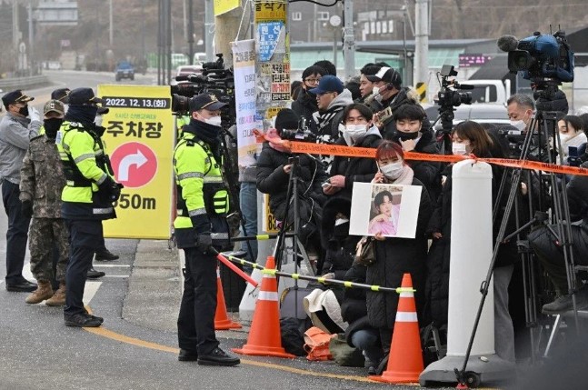 Pek çok BTS hayranıi Jin'in askeri eğitim alacağı Yeoncheon bölgesinde, birliğin önünde toplandı ve şarkıcıya destek verdi.