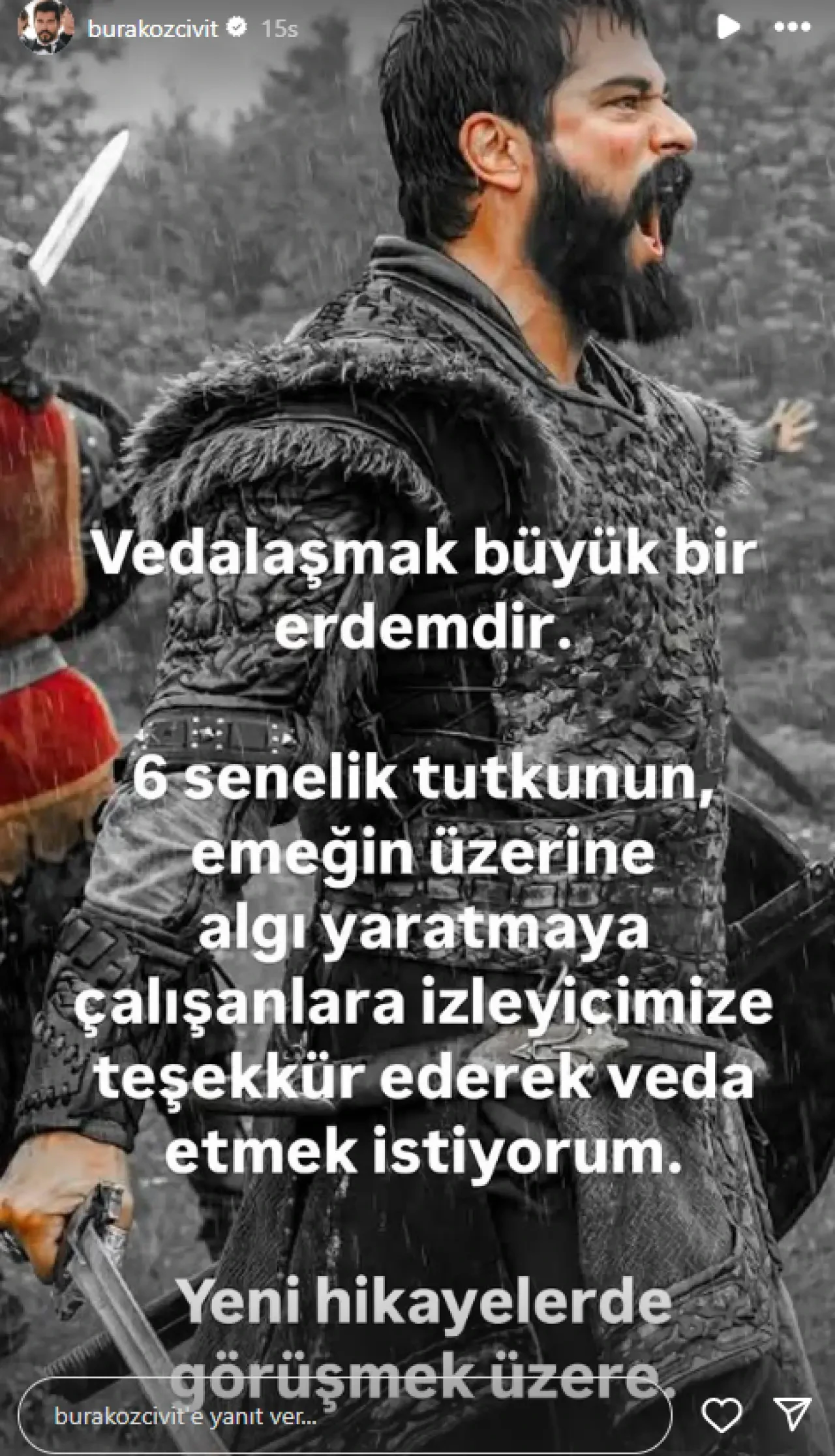 Kuruluş Osman dizisinde 6 sezondur Osman Bey karakterine hayat veren Burak Özçivit, diziden resmen ayrıldığını sosyal medya hesabından duyurdu.