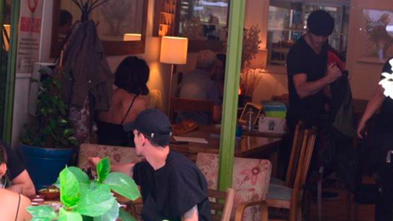 Bir kafede oturup konuşmaya başlayan iki oyuncu basın mensuplarını fark edince dışarıdan içeriye geçiş yaptı.