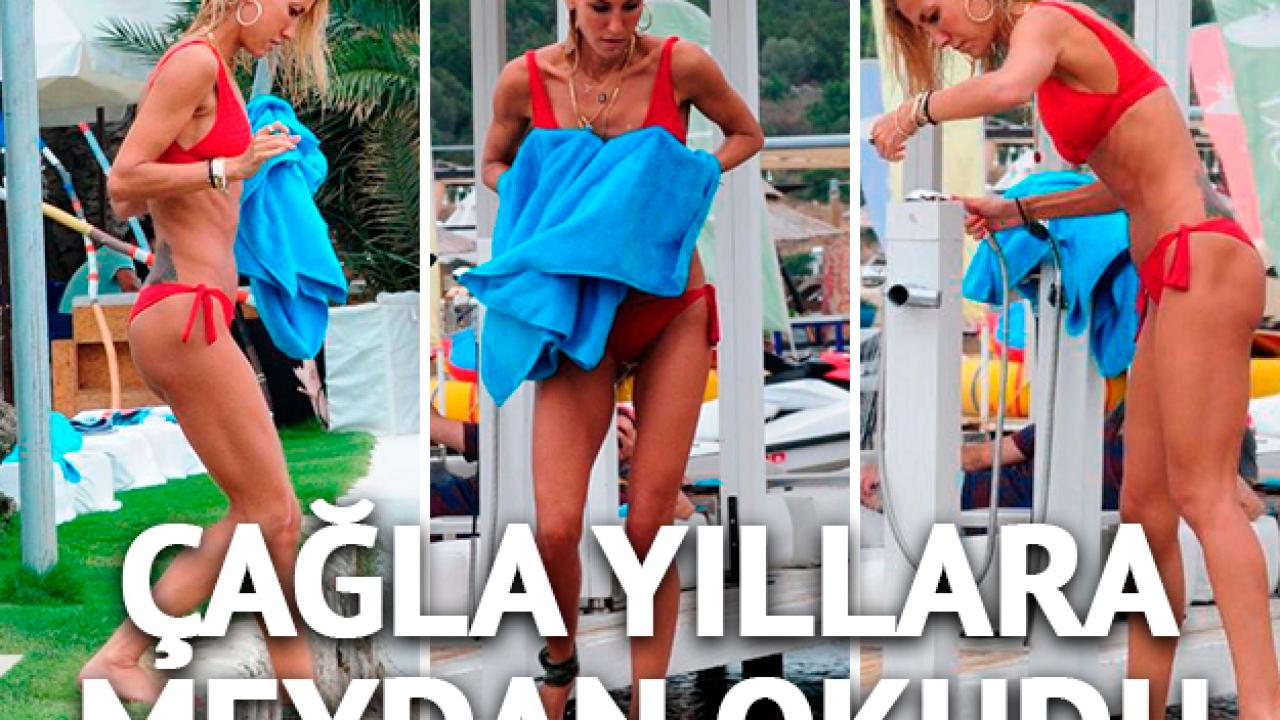Oğulları Kuzey ve Uzay ile tatilin keyfini çıkaran Çağla Şıkel kusursuz vücudu ve yıllara meydan okuyan bikinisiyle Gölköy sahilinde herkesin ilgi odağı oldu.