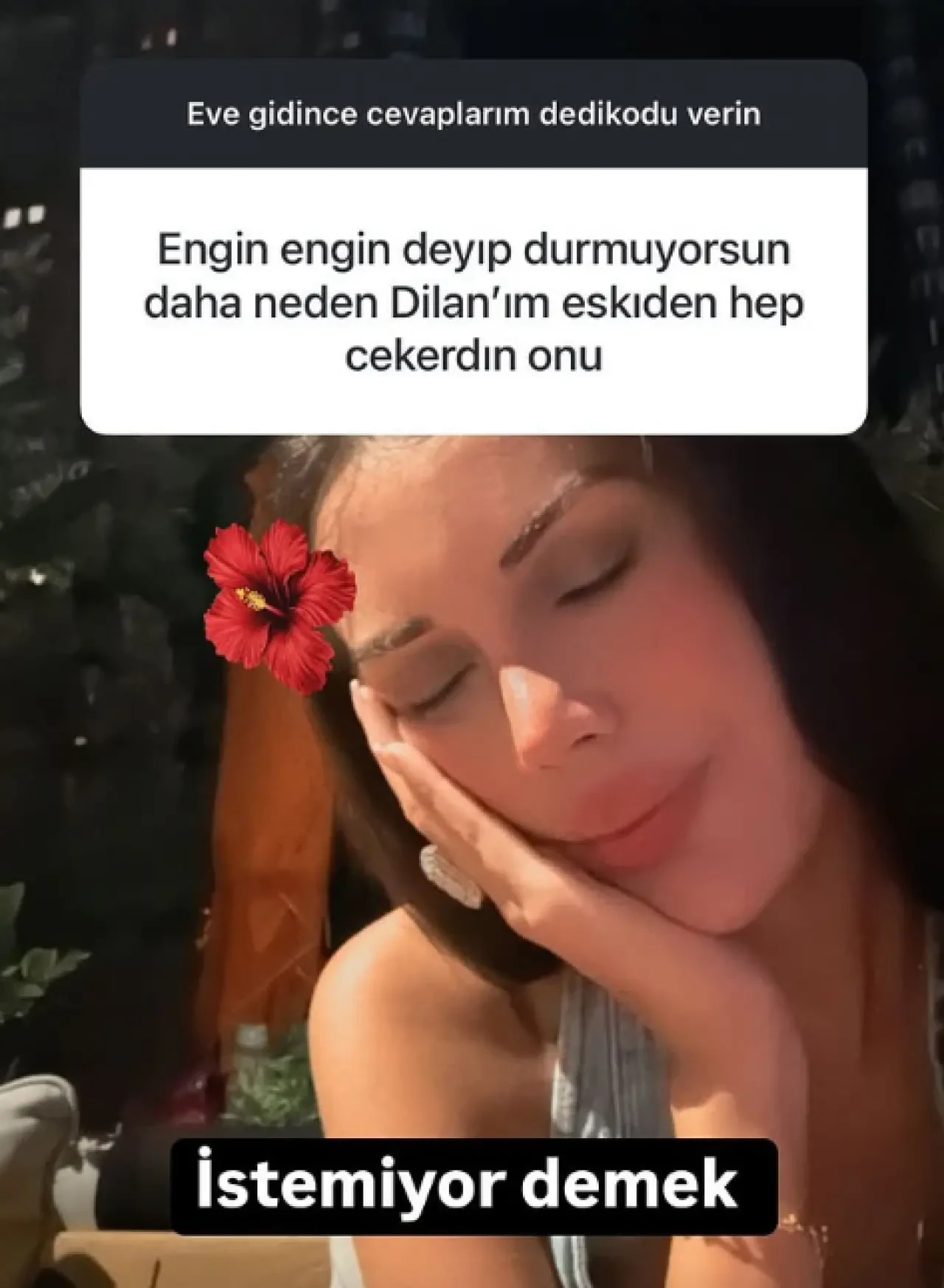 Bu yanıt, sosyal medyada “İlişkide kriz mi var?” sorularını beraberinde getirdi. Ardından gelen “Engin Engin deyip durmuyorsun, hep çekerdin onu” yorumuna ise “İstemiyor demek ki” şeklinde karşılık verdi.