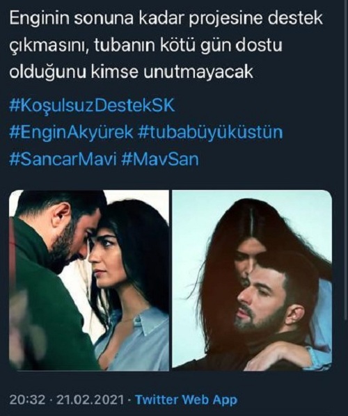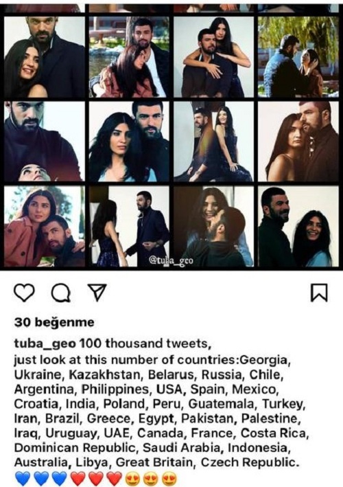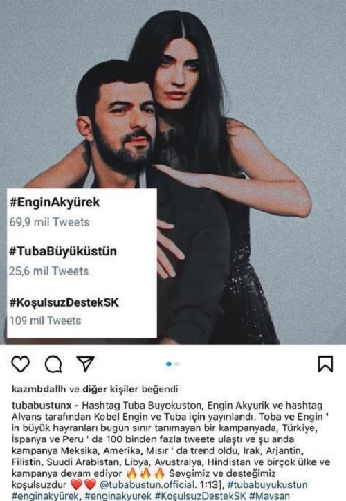 Dizi hayranları attıkları tweetlerle; Gürcistan, Ukrayna, Kazakistan, Rusya, Şili, Arjantin, Filipinler, ABD, İspanya, Hindistan, Polonya, İran, Brezilya, Latin Amerika, Kanada, Fransa, Suudi Arabistan, Endonezya, Avusturalya, İngiltere, Libya ve Çek Cumhuriyeti başta olmak üzere 36’dan fazla ülkede en çok konuşulanlar listesine girmeyi başardı. Fanlar tarafından paylaşılan #EnginAkyürek, #TubaBüyüküstün, #KoşulsuzdestekSK etiketleri, 100 Binin üzerinde paylaşım alarak Twitter gündemini altüst etti.