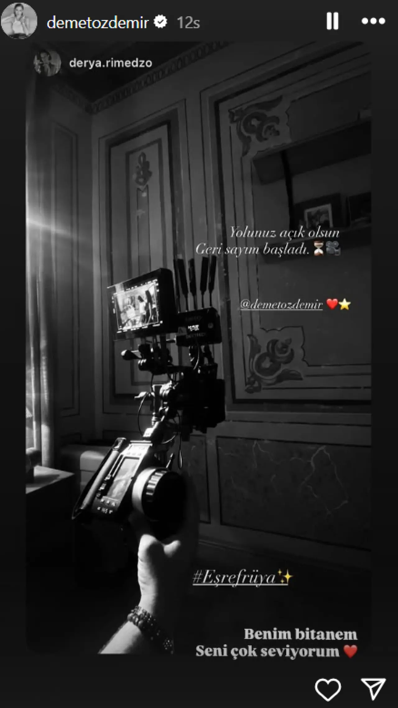 Kanal D ekranlarında geçtiğimiz sezona damga vuran Eşref Rüya, yeni bölümleriyle geri dönmeye hazırlanıyor. Çağatay Ulusoy ve Demet Özdemir’in başrollerini paylaştığı dizinin ikinci sezonu için heyecan artarken, Özdemir’in sosyal medya paylaşımı gündem oldu.