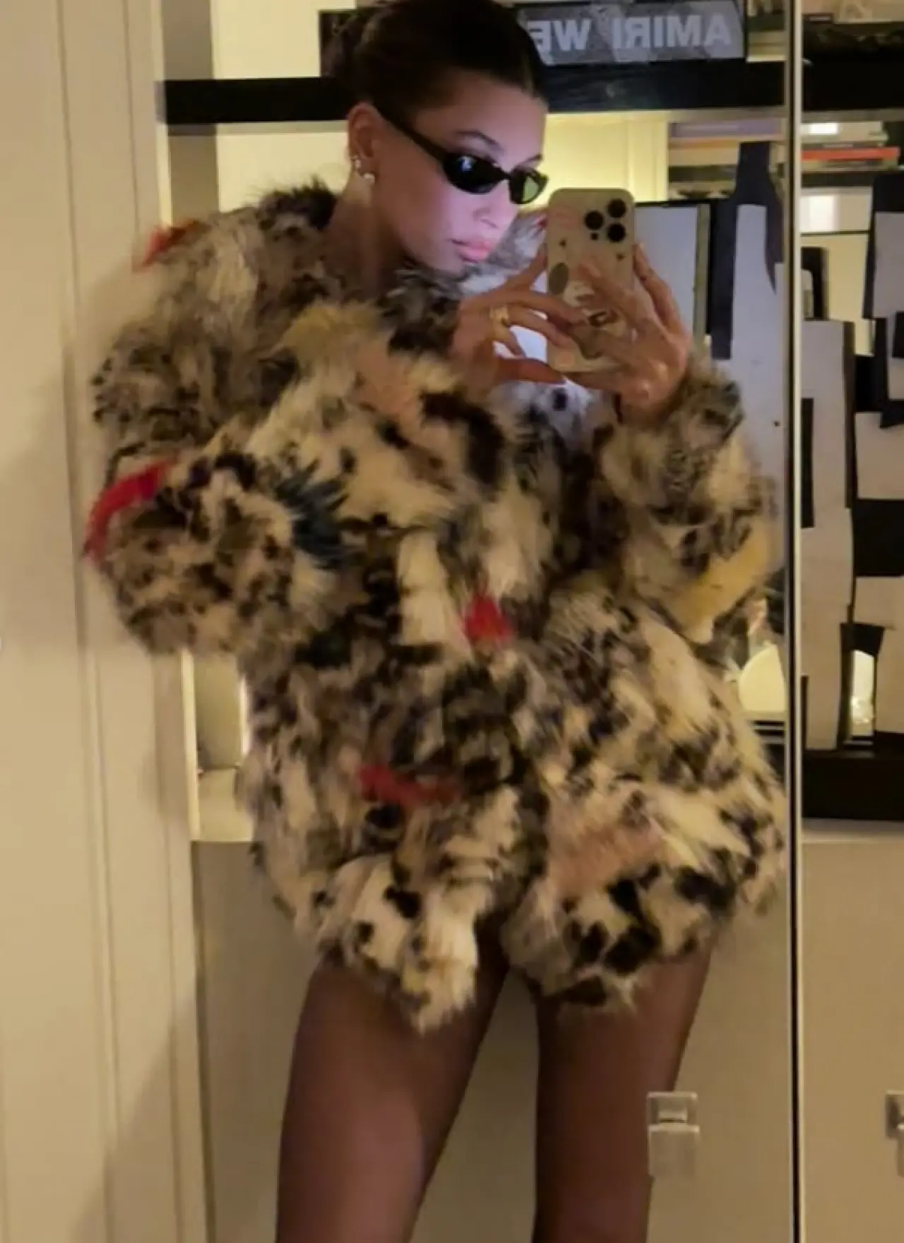Bir diğer karede ise Hailey, hayranlarını cesur bir “banyo selfie”siyle selamladı. Leopar desenli peluş montu, sıkıca topladığı saçı ve dramatik makyajıyla modanın sınırlarını zorladı. Bu kare, moda eleştirmenlerinden tam not alırken, “Yalnızca bir moda ikonu banyo aynasında bu kadar etkileyici olabilir” yorumları aldı.