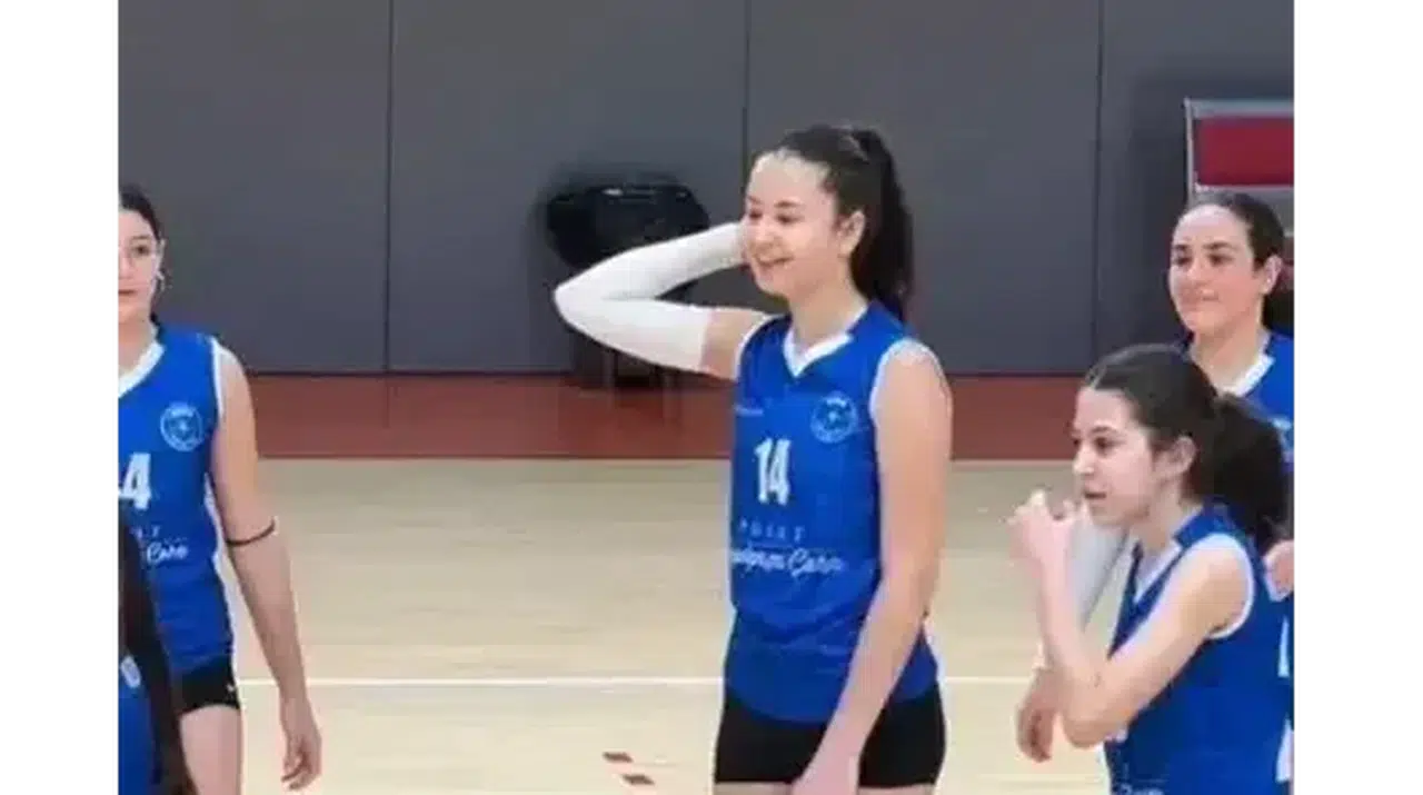 Voleybol oynarken çekilen görüntülerde genç sporcu adayının forma numarası 14 ile sahada yer aldığı görüldü.