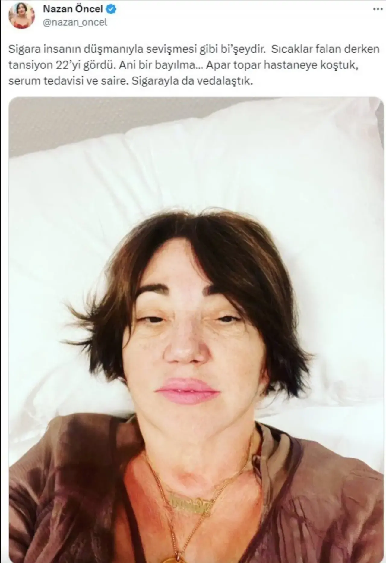 Yaşadığı sağlık sorunlarını sosyal medya hesabından takipçileriyle paylaşan Nazan Öncel, şu ifadeleri kullandı: