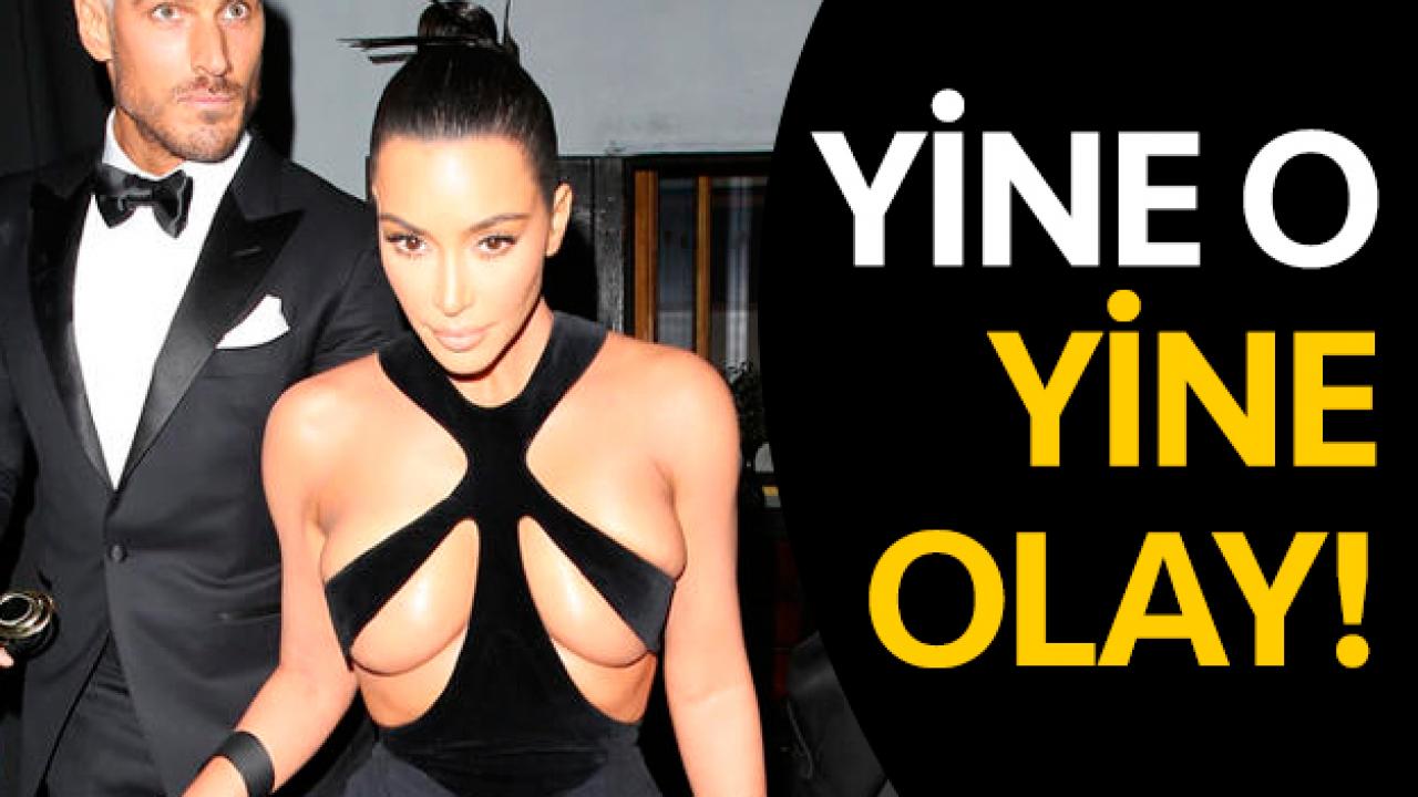Katıldığı davette giydiği kıyafetin dekoltesi sansasyon yaratan Kim Kardashian günün en çok konuşulan ismi oldu.