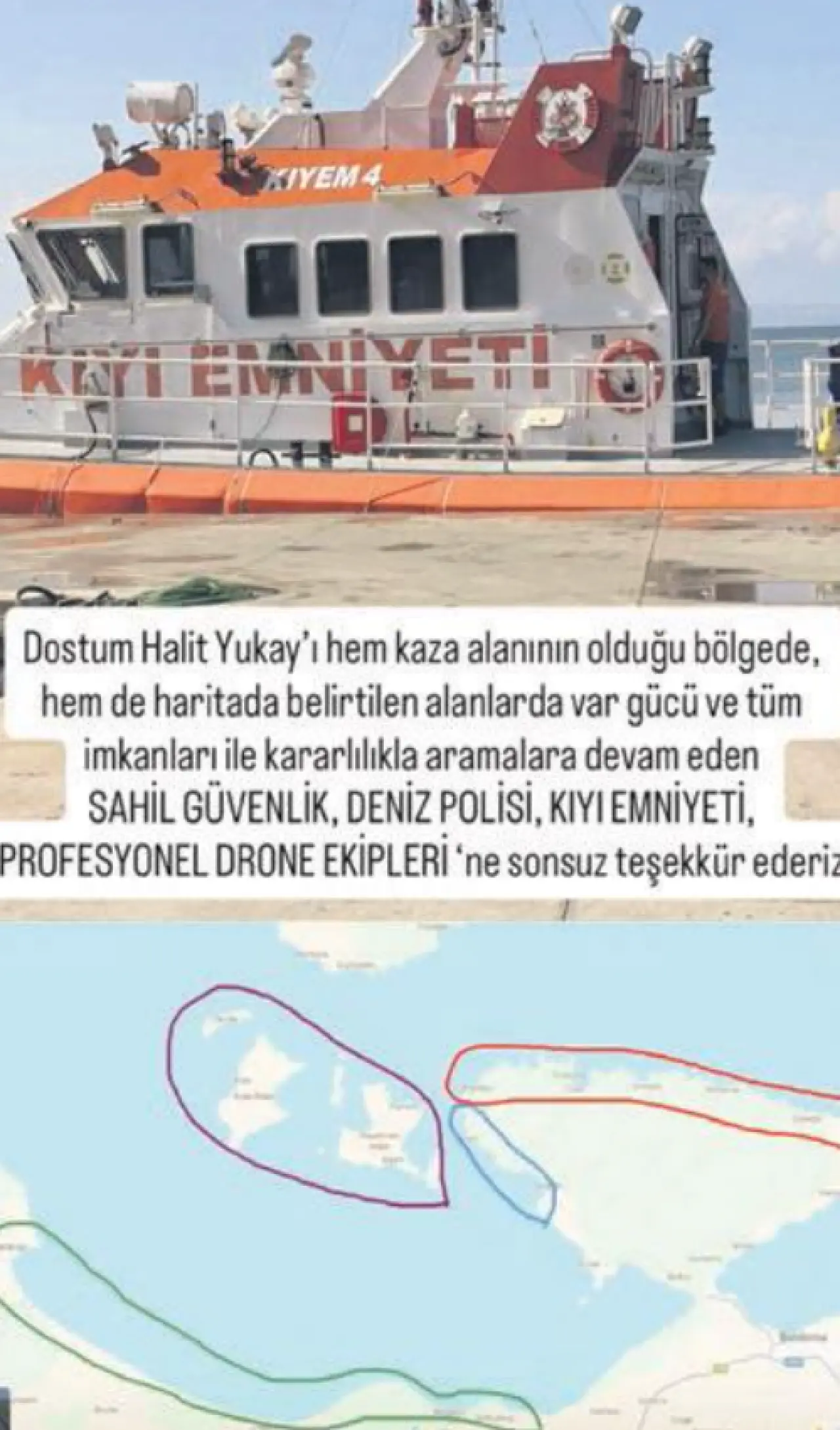 Arama kurtarma çalışmaları tüm hızıyla sürerken, Yukay’ın yakın dostu Kıvanç Tatlıtuğ sosyal medyadan yaptığı paylaşımla dikkat çekti. Bölgenin haritasını paylaşarak dört kritik noktayı işaretleyen ünlü oyuncu, takipçilerine ve yetkililere seslendi: