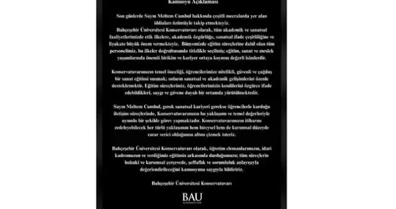 Bahçeşehir Üniversitesi Konservatuvarı tarafından yapılan açıklamada şu ifadelere yer verildi: