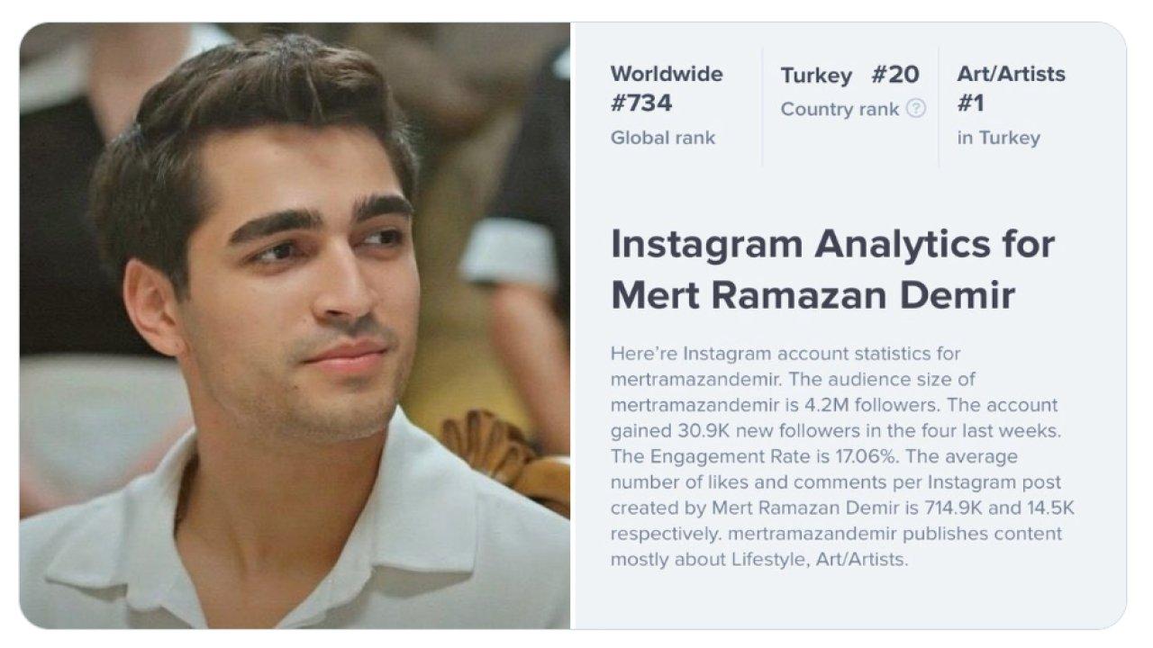 X platformunda kısa sürede tt olan sıralamayla ilgili, hayranları #MertRamazanDemir hashtagiyle genç ve yetenekli oyuncuya tebriklerini iletmeye devam ediyor. Demir'in oynadığı Yalı Çapkını dizisindeki partneri Afra Saraçoğlu ise 5. sırada yer alıyor.