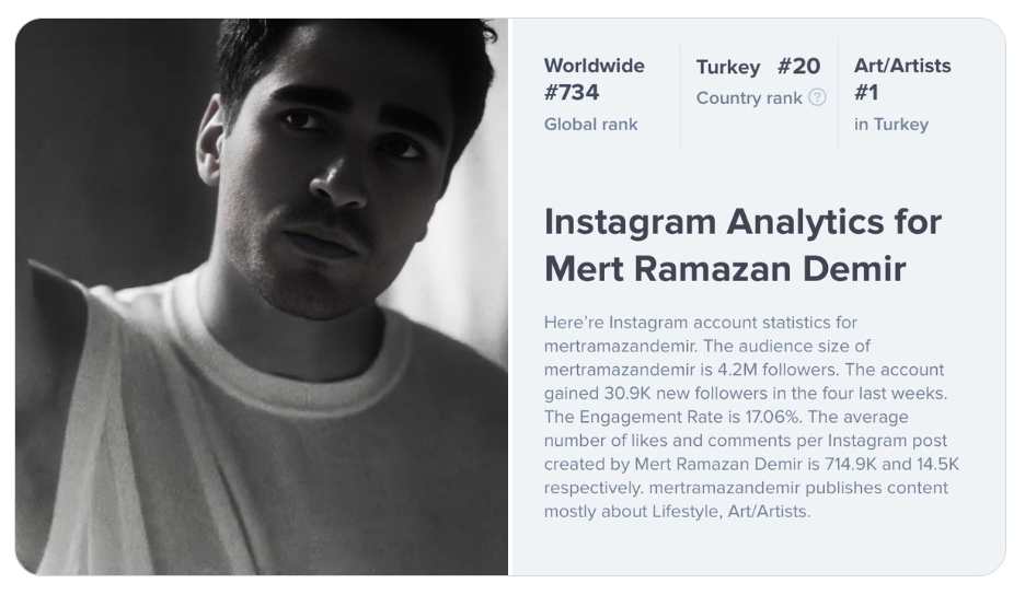 Her zaman gündemde kalmayı başaran güzel ve yetenekli oyuncu Serenay Sarıkaya ise Türkiye sıralamasında 5. sırada fakat oyunculuk değil "moda" kategorisinde değerlendiriliyor; Eda Ece (Tuncer) lifestyle sıralamasında 2. sırada.