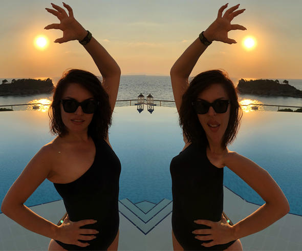 Havuz başında çekildiği fotoğrafı instagram hesabından 'kaydırmalı' notuyla paylaşan Mola, takipçilerini güldürdü. Fotoğrafın orijinal halini ve photoshop'lu halini birlikte yayınlayan ünlü oyuncunun bu paylaşımı büyük ilgi gördü.