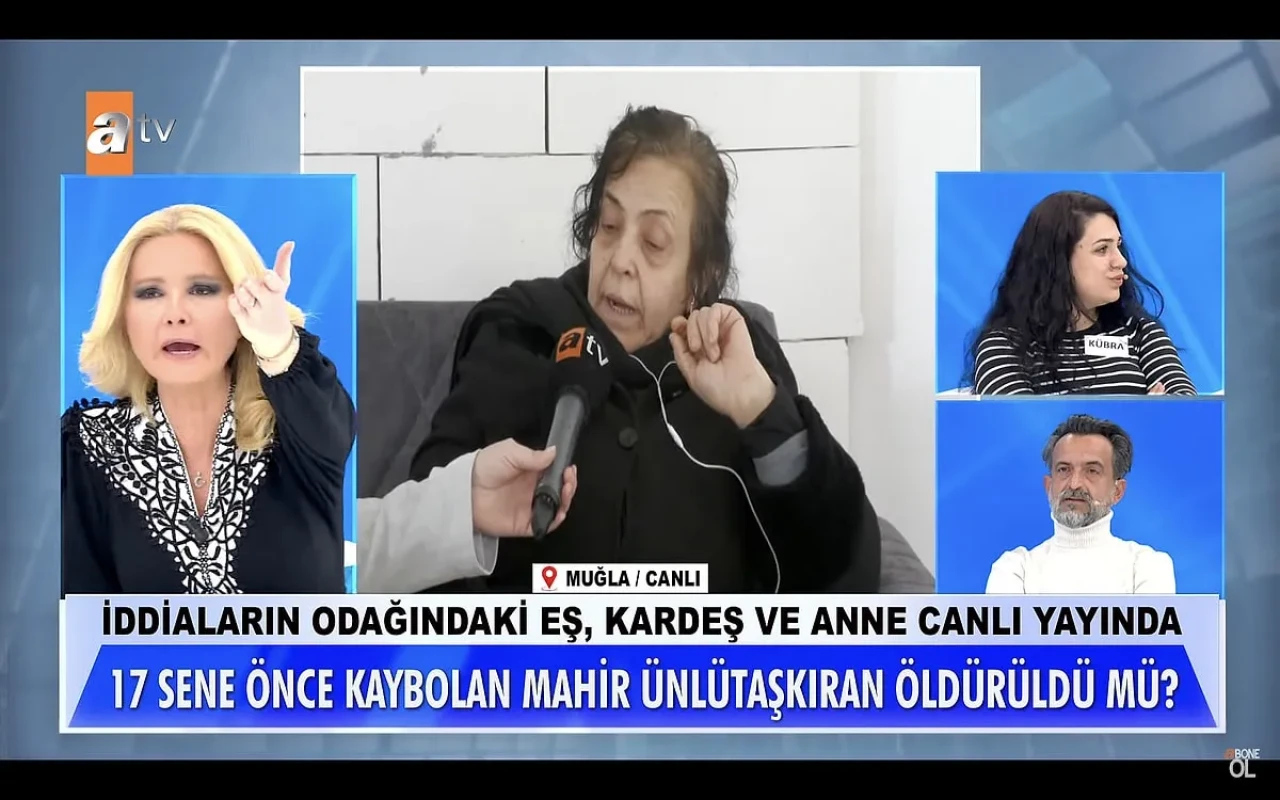 Müge Anlı, kayıp Mahir'i aramak için stüdyoya gelen akrabaların yaşadığı hayal kırıklığını dile getirirken, Mahir'in annesine de sert sözler sarf etti. "Gelininize yaptığı ahlaksızlığı niye sormadınız?" diyerek, anneye de büyük bir eleştiri yöneltti.