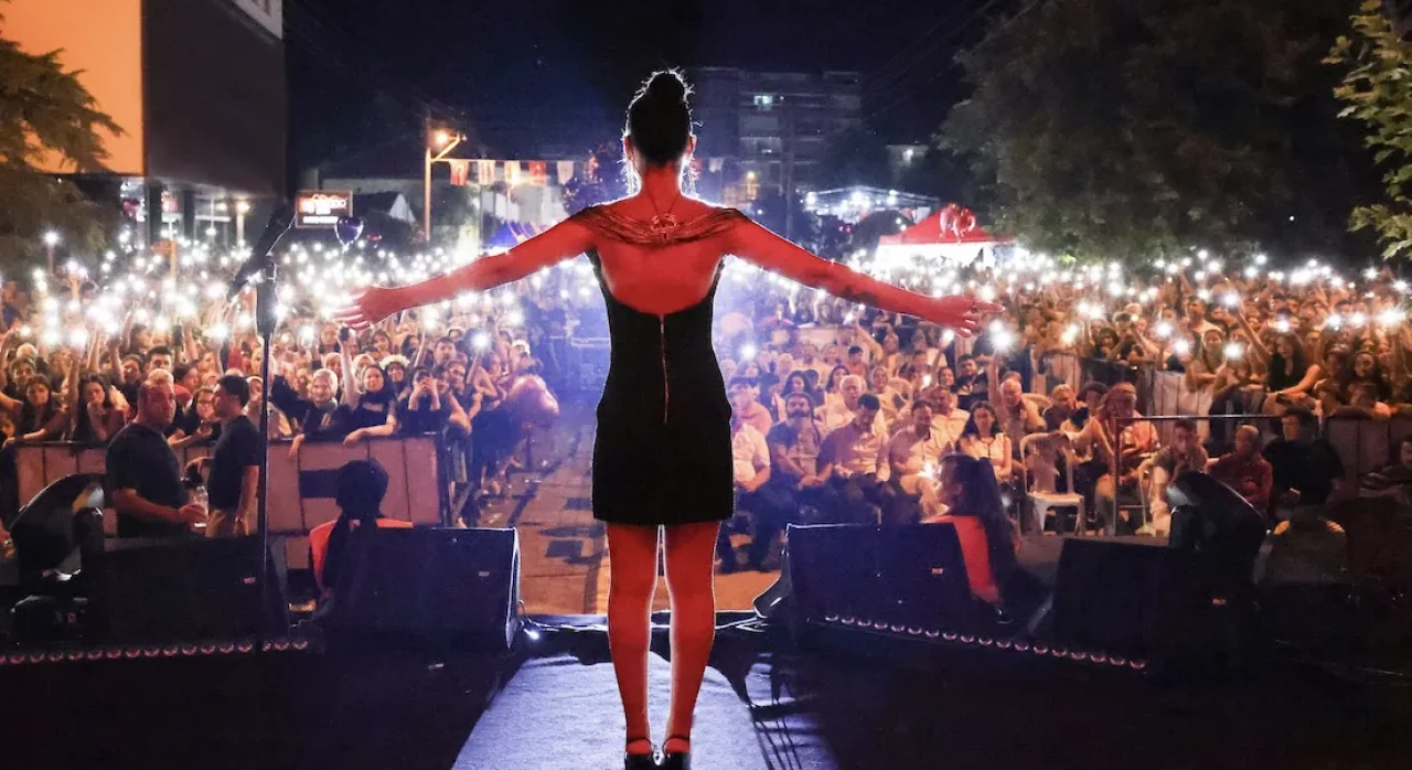 Yörükler Şenliği’nde Hande Ünsal fırtınası esti. Siyah elbisesi, güçlü sahne duruşu ve enerjisiyle geceye adeta müzikal bir imza attı.