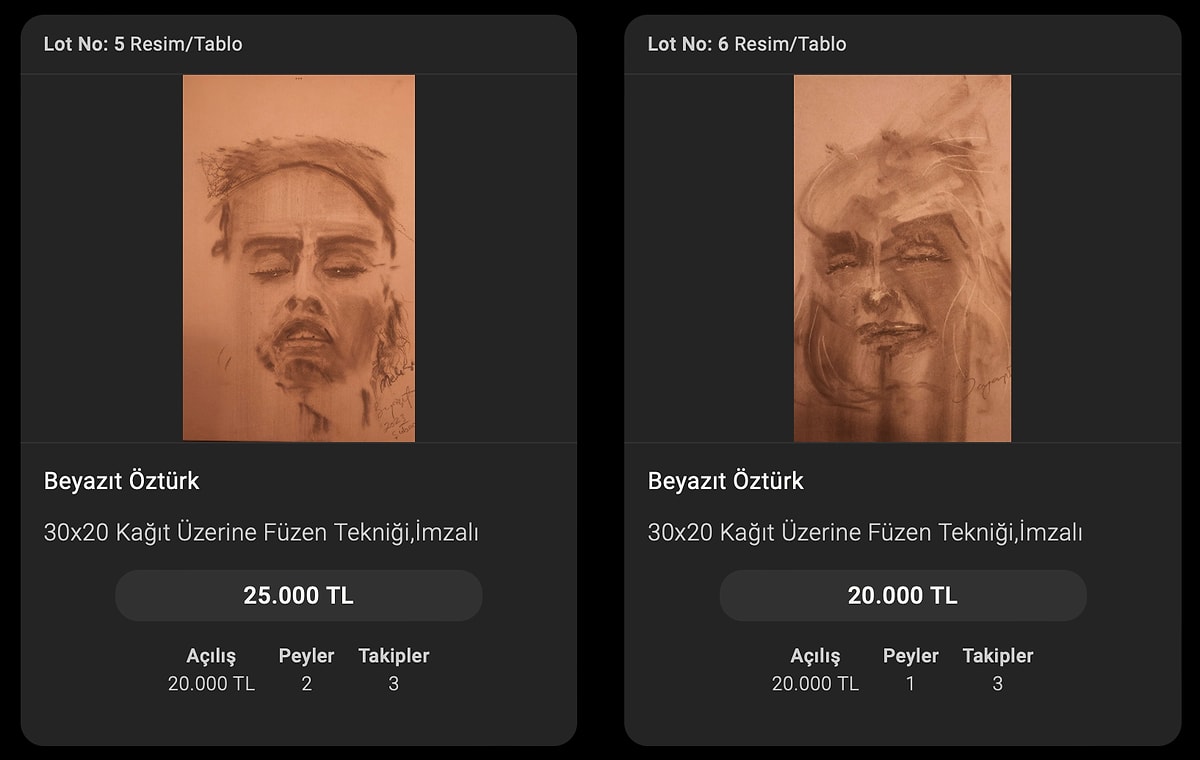 Senelerdir severek izlediğimiz, her seferinde hepimize kahkahalar attırmayı başaran Beyaz 'Cash On The Table' online müzayedesinde kağıt üzerine füzen tekniği ile yaptığı portreler yer aldı. Beyaz'ın portelerinin en yükseği 25 bin TL, geriye kalan dördü 20 bin TL'den olmak üzere açık artırmaya açıldı.