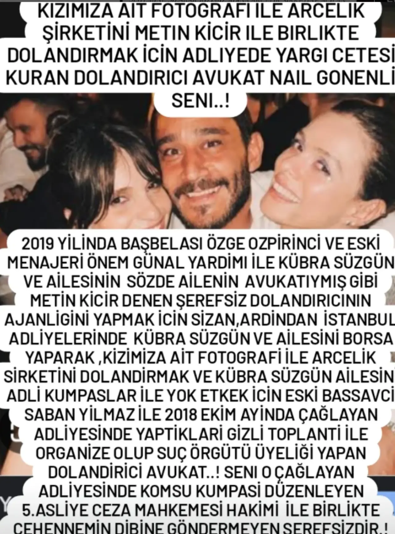 Bir diğer paylaşımda ise CİMER’e suç duyurusunda bulunulduğunu ima eden bir görsel ve eski menajer Özlem Günal’a yönelik sert ifadeler yer aldı.