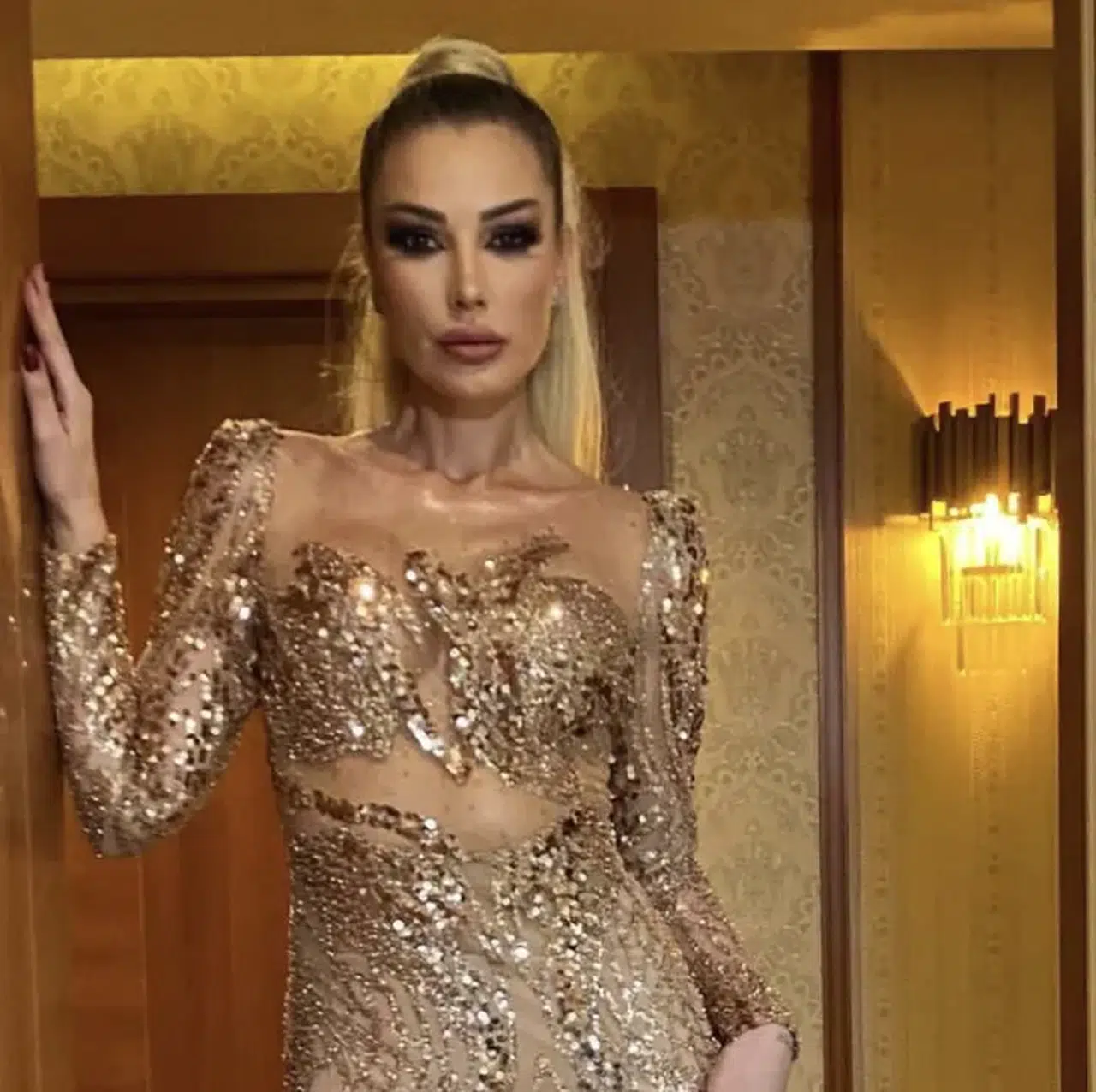 Petek Dinçöz’ün sahneye altın rengi ve ışıltılı bir kostümle çıktığı belirtildi. Vücuda oturan sahne elbisesinin modacı Hasan Altın tarafından tasarlandığı aktarıldı.