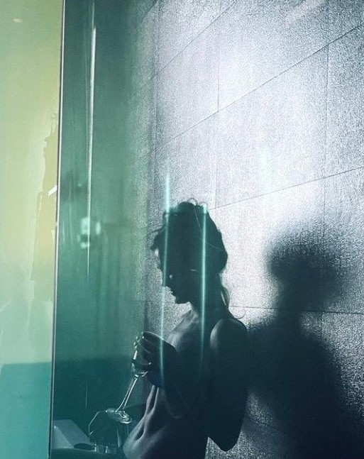 Deniz, duşta iç çamaşırıyla poz verdi. Eline kadeh alan ünlü oyuncu "A'dan X'e" notunu düştü.