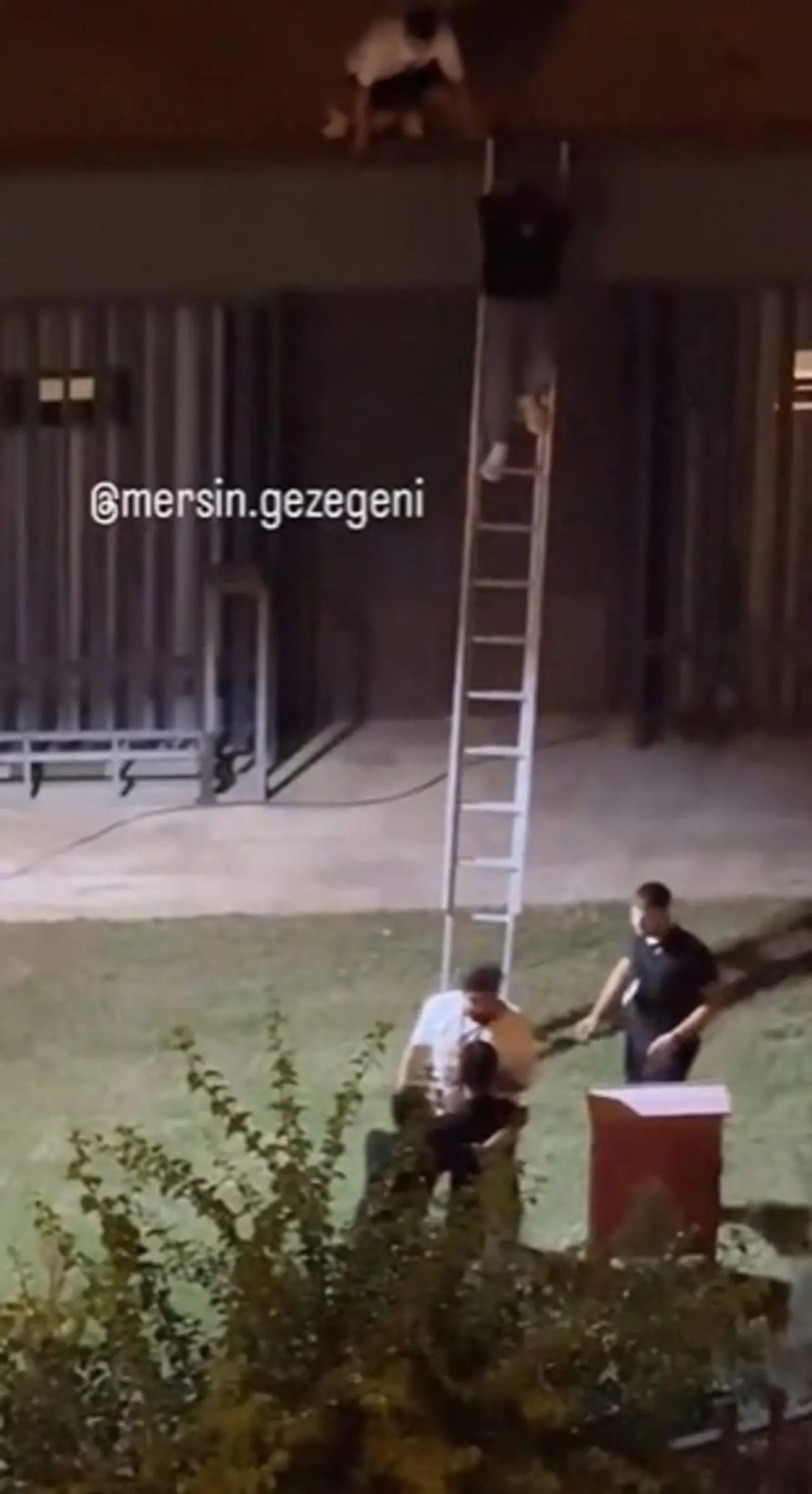 Çatıdan atılan genç, kısa süre yerde kaldıktan sonra ayağa kalkıp uzaklaşırken, darp edilen gencin fenalaştığı belirtildi.