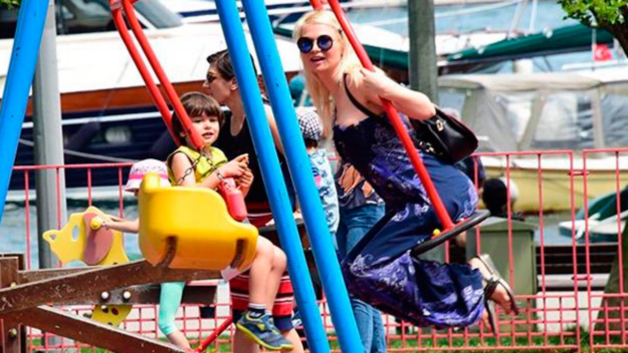 Oğullarıyla güzel havanın tadını çıkaran Piriler, bir ara salıncakta çocuklar gibi sallandı.