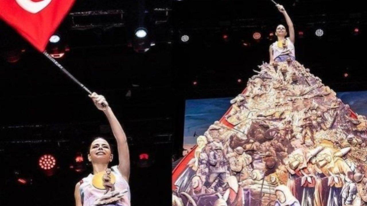 Üzerinde Kurtuluş Savaşı’nı temsil eden görüntülerin olduğu elbise tamamıyla ortaya çıktığında uzun süren bir alkış tufanı koptu. Harbiye Açık Hava’daki beş bin kişi “10. Yıl Marşı”na ellerindeki Türk bayraklarıyla eşlik ettiğinde ortaya muazzam bir görüntü çıktı.