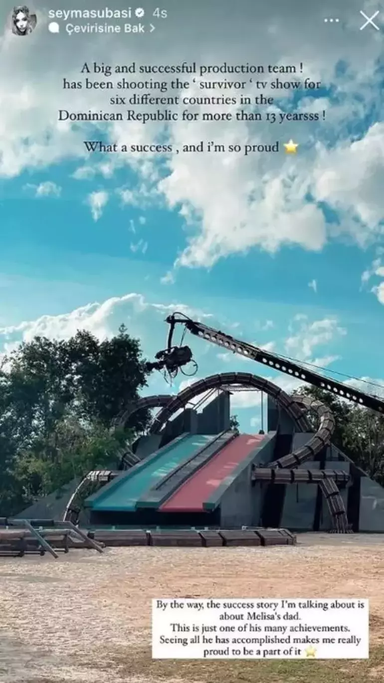Subaşı, "Büyük ve başarılı bir yapım ekibi! 6 farklı ülke için 'survivor' tv şovunu çekiyor. 13 yıldan fazladır Dominik Cumhuriyeti! Bu arada bahsettiğim başarı hikâyesi Melisa'nın babası hakkında..." sözlerini paylaştı.