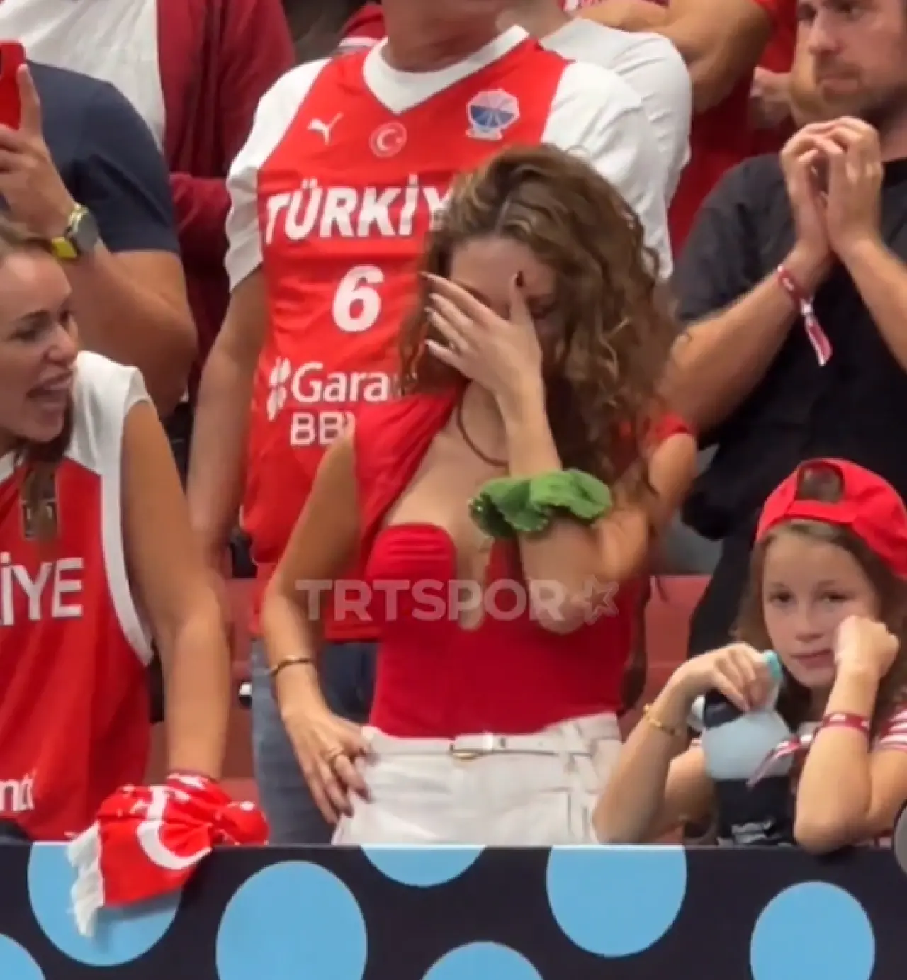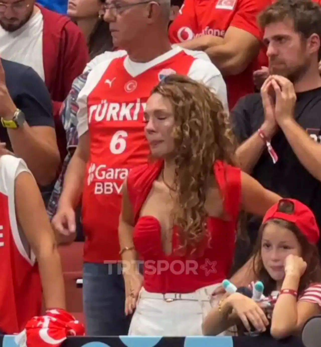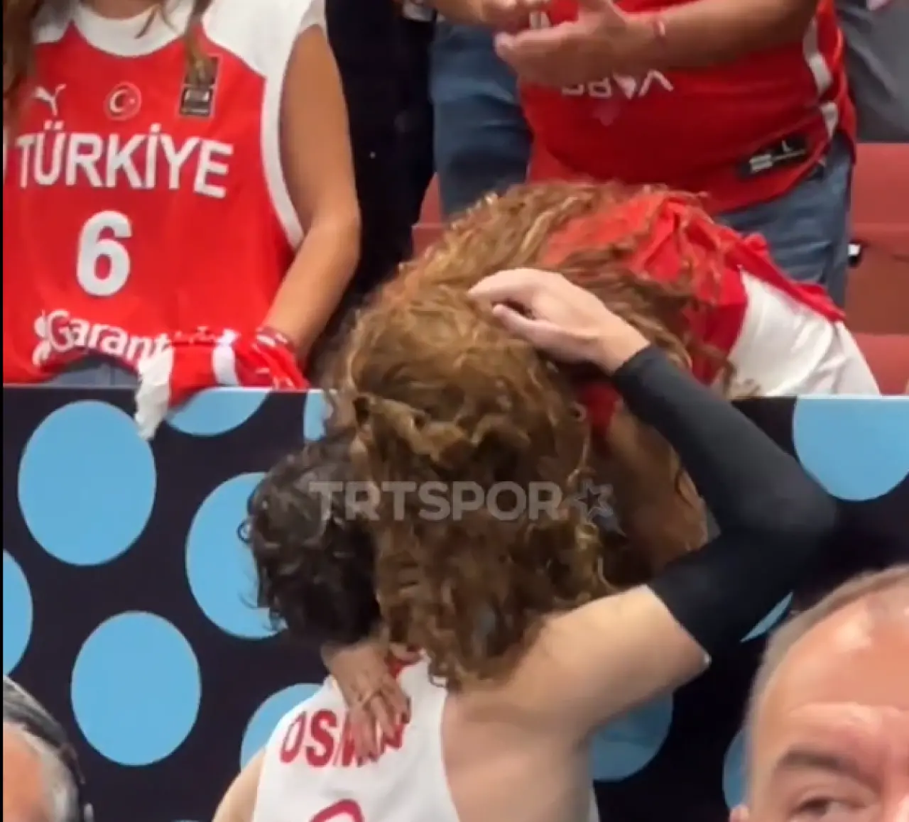 Gözyaşlarını silmeye çalışan güzel oyuncu, Cedi Osman’ın kendisine doğru geldiğini görünce daha da duygulandı.