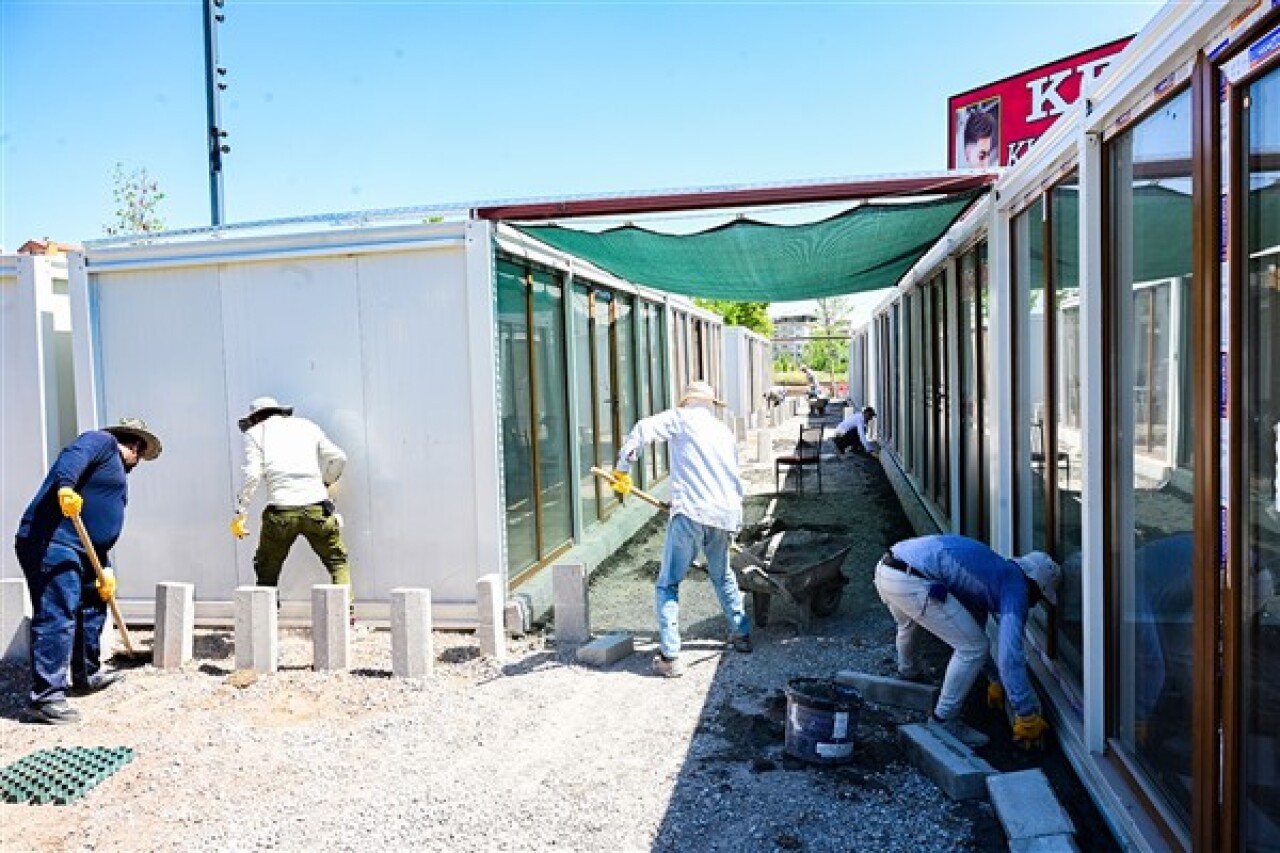 6 Şubat depremlerinde büyük yıkım yaşayan Malatya’da, rezerv alan ilan edilen Kışla Caddesi’nin yıkılacak olması sebebiyle Millet Bahçesi konteyner çarşısına taşınan esnafların daha iyi şartlarda hizmet verebilmesini sağlamak için konteyner çarşıda gerekli düzenlemeler Malatya Büyükşehir Belediyesi tarafından hızla sürdürülüyor.