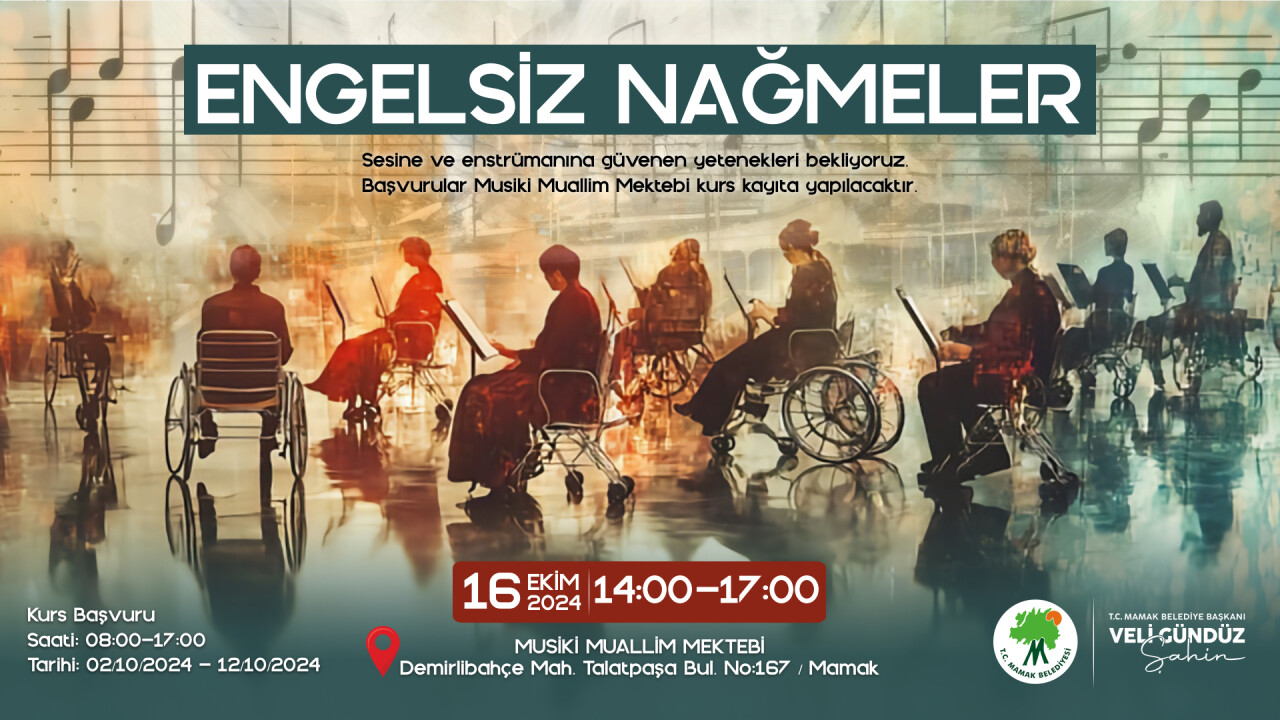 12 Ekim tarihine kadar sürecek kayıt işlemleri, Musiki Muallim Mektebi kurs kayıt birimine yapılacak. Mamak Belediyesi, sosyal sorumluluk projelerine bir yenisini ekleyerek engelli vatandaşlardan oluşan bir koro kurma kararı aldı. Enstrüman çalan adayların 12 Ekim tarihine kadar başvurularını Musiki Muallim Mektebi Kurs Kayıt Birimine yapması gerekiyor. Kayıt işlemlerini tamamlayan adaylar, bağlama ve gitar eğitmeni Halil Kiper tarafından eğitim alacak. Üç haftalık eğitimin ardından oluşturulacak koro 3 Aralık Dünya Engelliler Günü’nde Muhsin Ertuğrul Sahnesi’nde bir de gösteri yapacak.