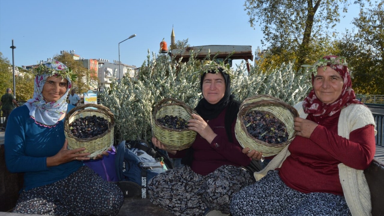 Yürüyüşe katılanlar ellerinde zeytin dolu sepetler ve zeytin dallarından yapılan taçlarla renkli görüntü oluşturdu.