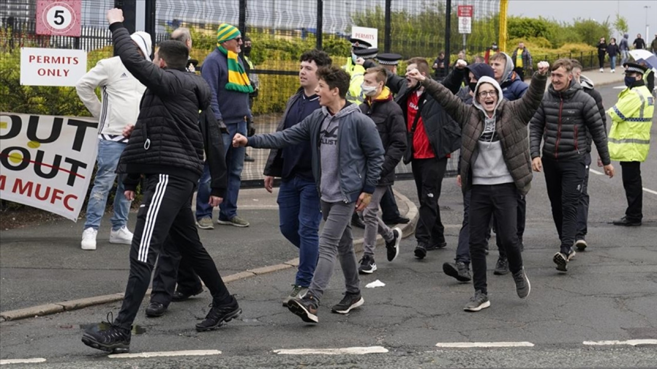 Manchester ekibinin Avrupa Süper Ligi'ne katılma girişimine ve kulübün sahibi ABD'li Glazer ailesine tepki gösteren yaklaşık 200 kişilik taraftar grubu, güvenlik bariyerlerini aşarak stada girdi.