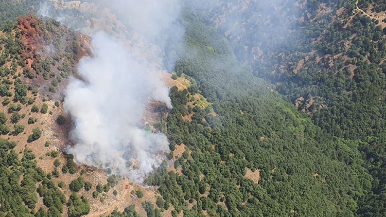 Çarıkbozdağ Mahallesi yakınlarında yerleşim birimlerine uzak konumdaki sarp arazide henüz belirlenemeyen nedenle yangın çıktı.