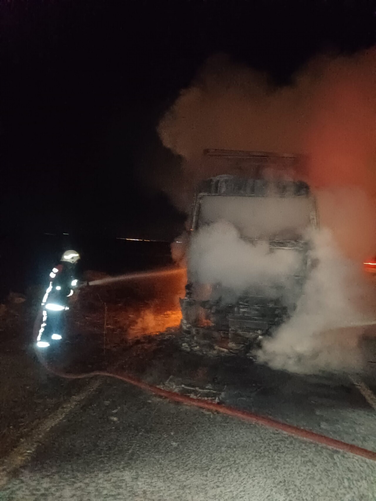 Yangını fark eden sürücü, aracı durdurup itfaiyeye durumu bildirdi.