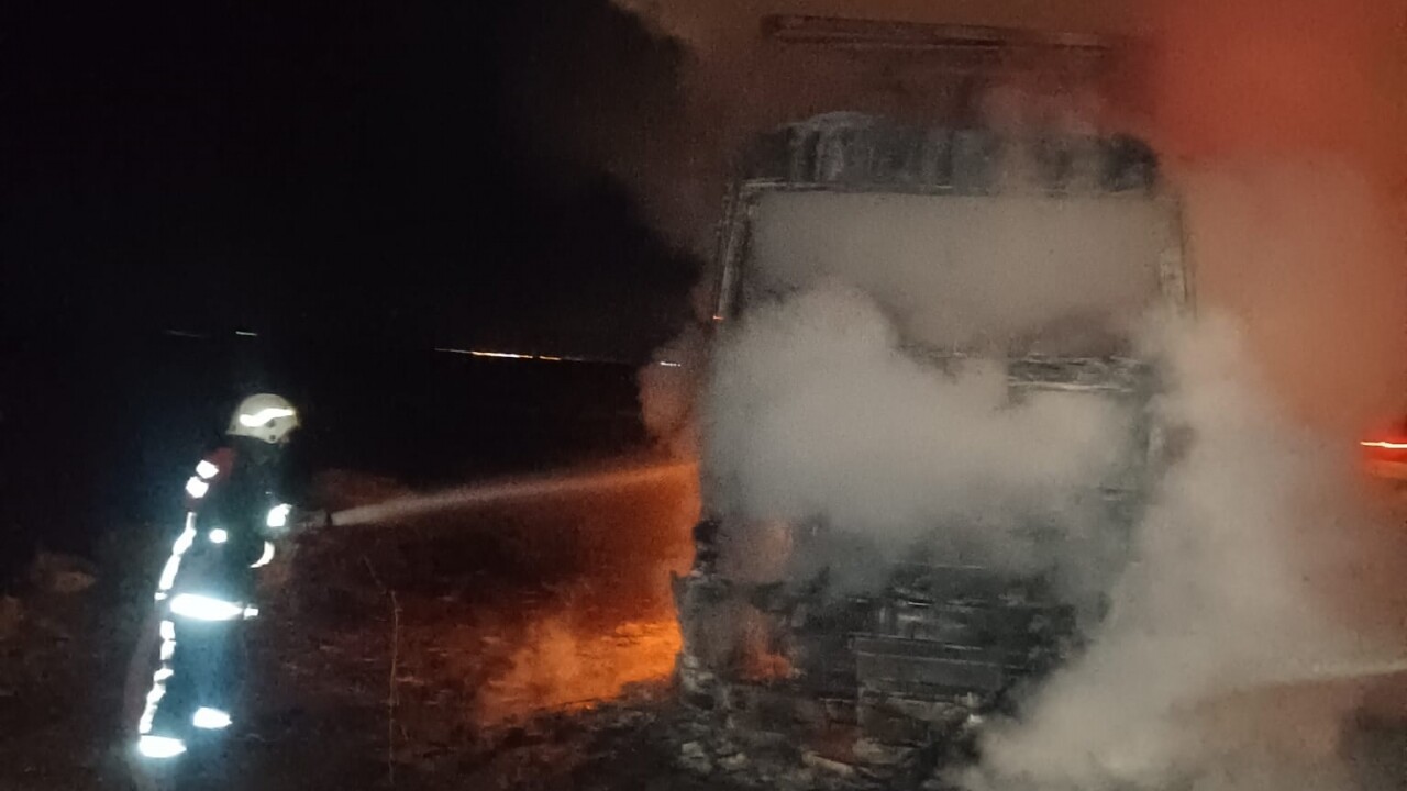 Olay yerine gelen itfaiye ekiplerinin çalışmasıyla söndürülen yangında, tır kullanılamaz hale geldi.
