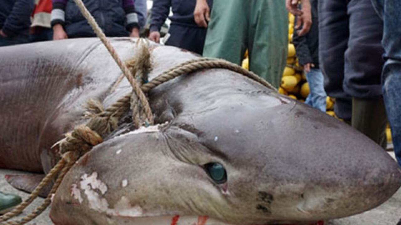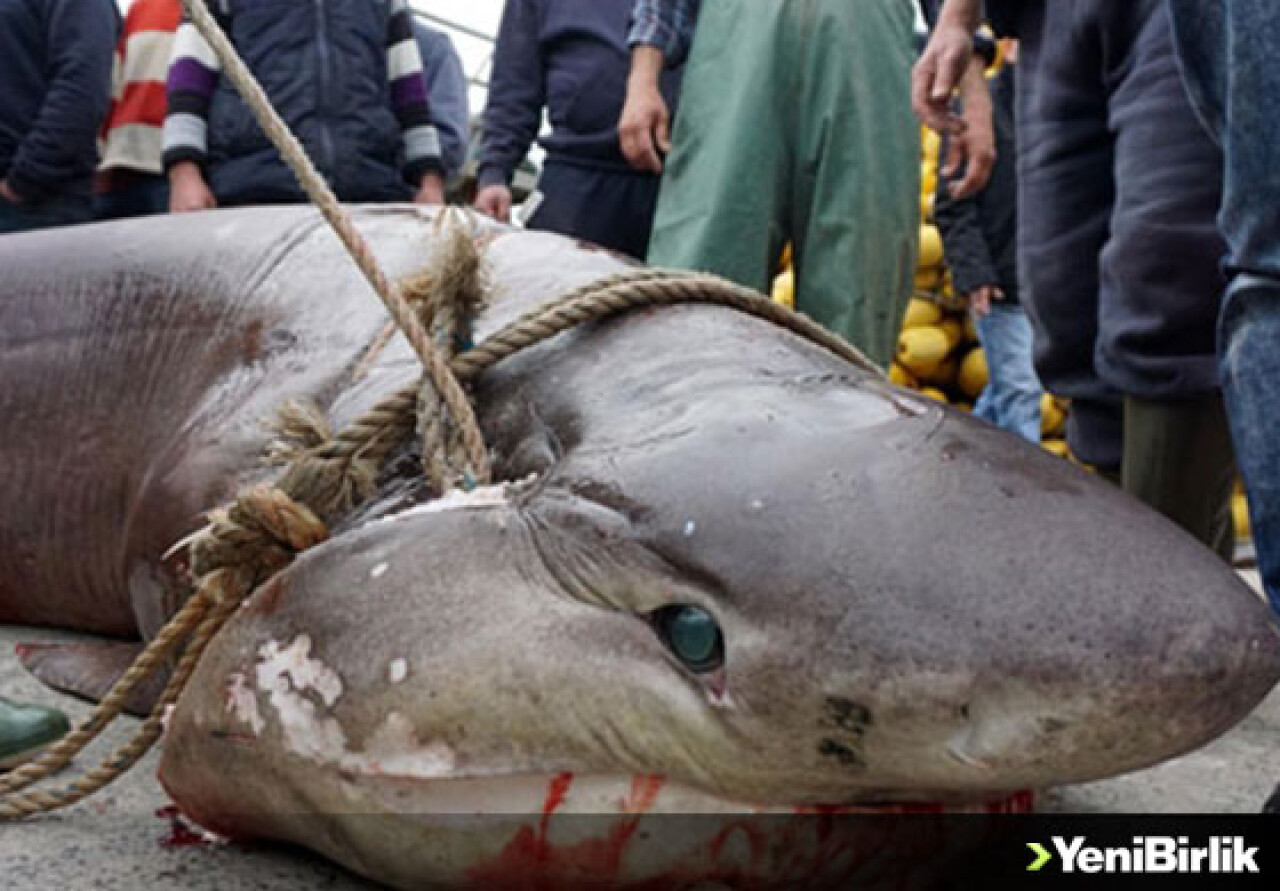 Tekirdağ'da balıkçı ağına yaklaşık 1 ton ağırlığında köpek balığı takıldı.