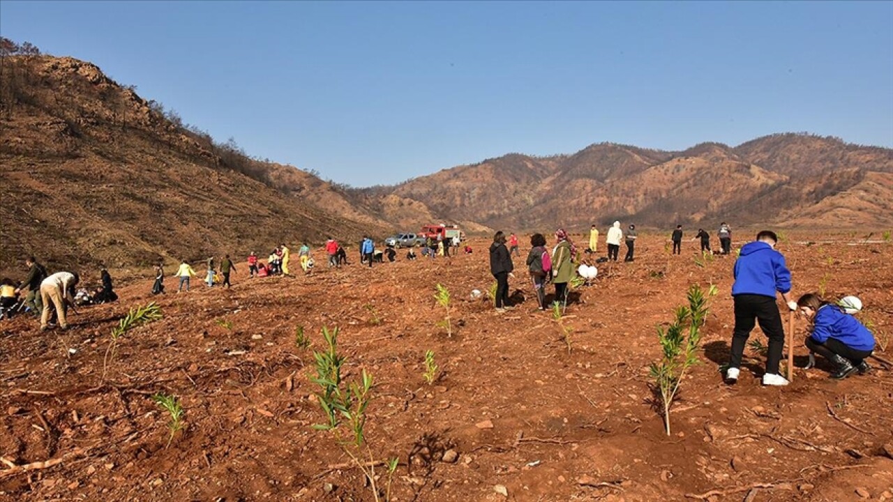 Marmaris ilçesinde orman yangınlarından etkilenen alanların yeniden canlandırılması amacıyla ağaçlandırma çalışmaları sürüyor.
