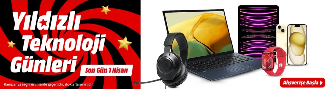 Avrupa’nın açık ara bir numaralı elektronik perakendecisi MediaMarkt’ın Yıldızlı Teknoloji Günleri kampanyası başladı. 27 Mart-1 Nisan tarihleri arasında sürecek kampanya kapsamında, akıllı telefondan tablete, klavyeden akıllı saate birçok ürün tüketicilerle buluşuyor.