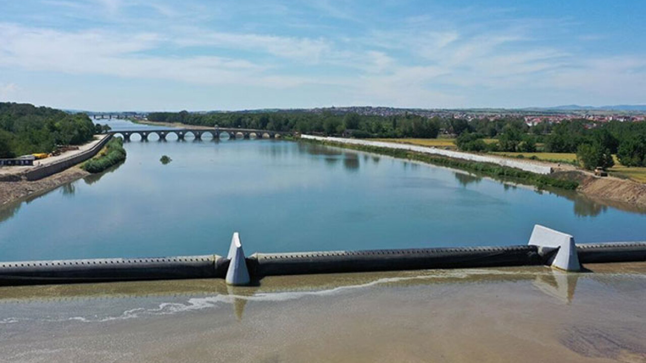 Şişirilerek sızdırmazlık ve su tutma testlerinden geçirilen savaklar, nehirde 4 metre yüksekliğinde su tutulmasını sağlayacak.