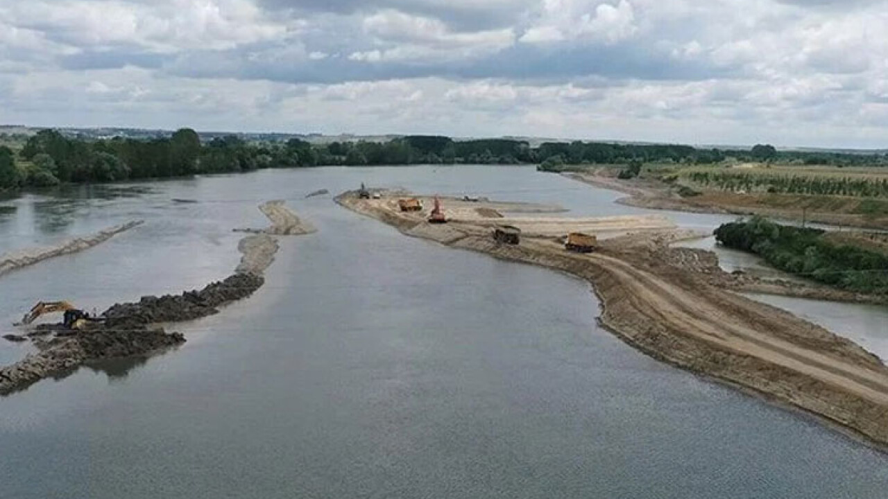 Devlet Su İşleri 11. Bölge Müdürlüğü ekipleri, Meriç Nehri'ndeki çalışmalar kapsamında Dr. Mehmet Müezzinoğlu Köprüsü ve Süvari Köprüsü arasındaki kesimde iş makineleriyle su akışını yavaşlatan kum öbeklerini temizliyor.