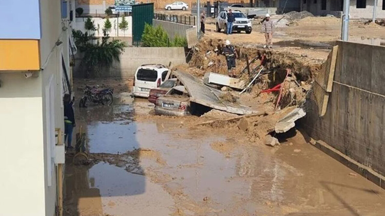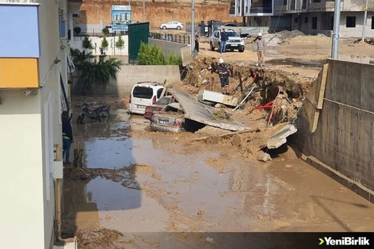 Altaylılar Mahallesi'nde de bir sitenin otoparkındaki araçlar suyun altında aldı, bir binanın istinat duvarı da park halindeki 3 aracın üzerine devrildi.