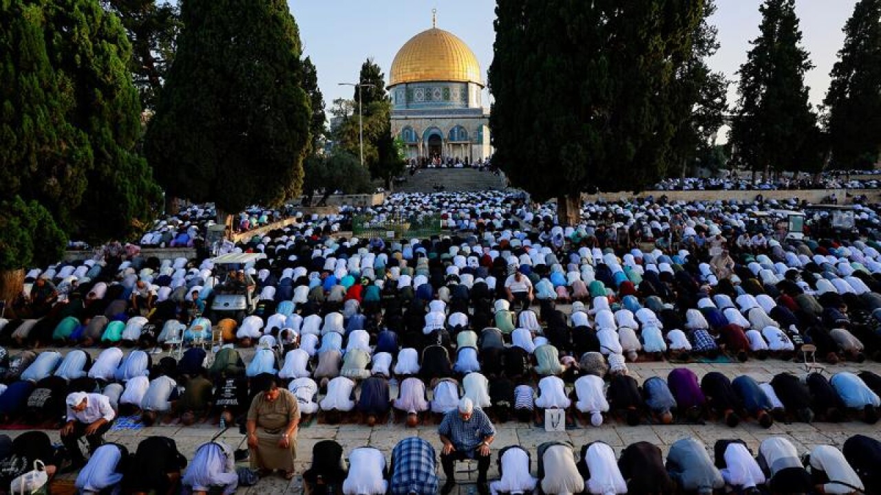Arife günü yatsı namazından itibaren Mescid-i Aksa'ya gelen Filistinlilerin sayısı sabah namazında on binlere ulaştı.