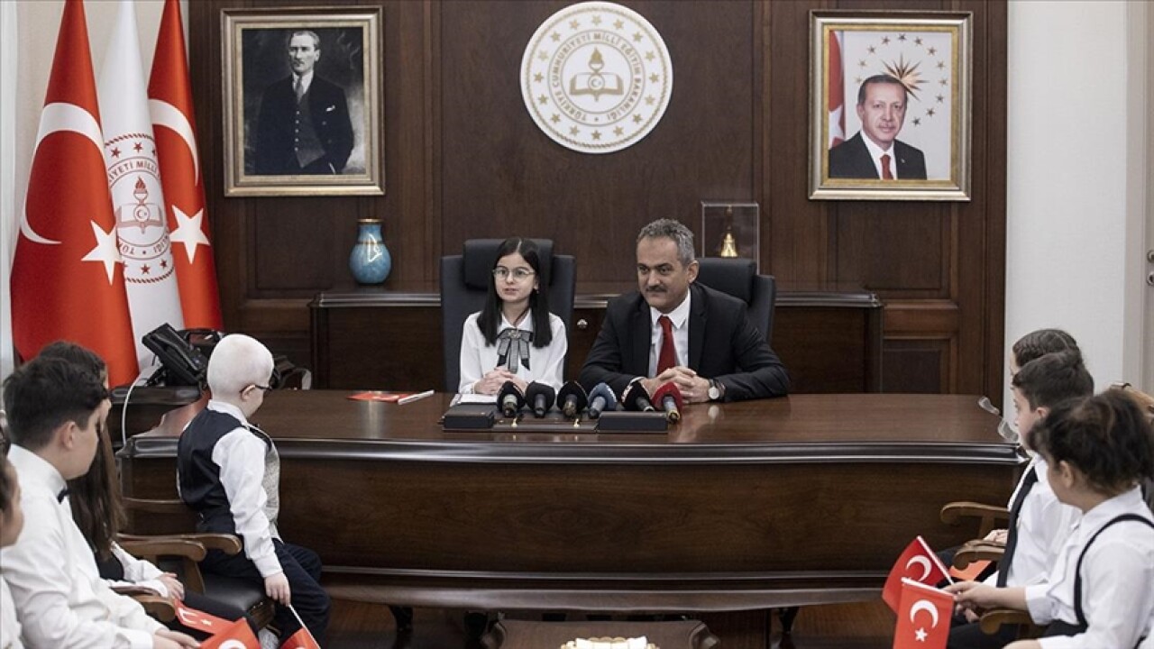 Bakan Özer, TBMM'nin açılışının 102'nci yıl dönümü ile 23 Nisan Ulusal Egemenlik ve Çocuk Bayramı dolayısıyla çeşitli okullardan gelen öğrencileri makamında kabul etti.