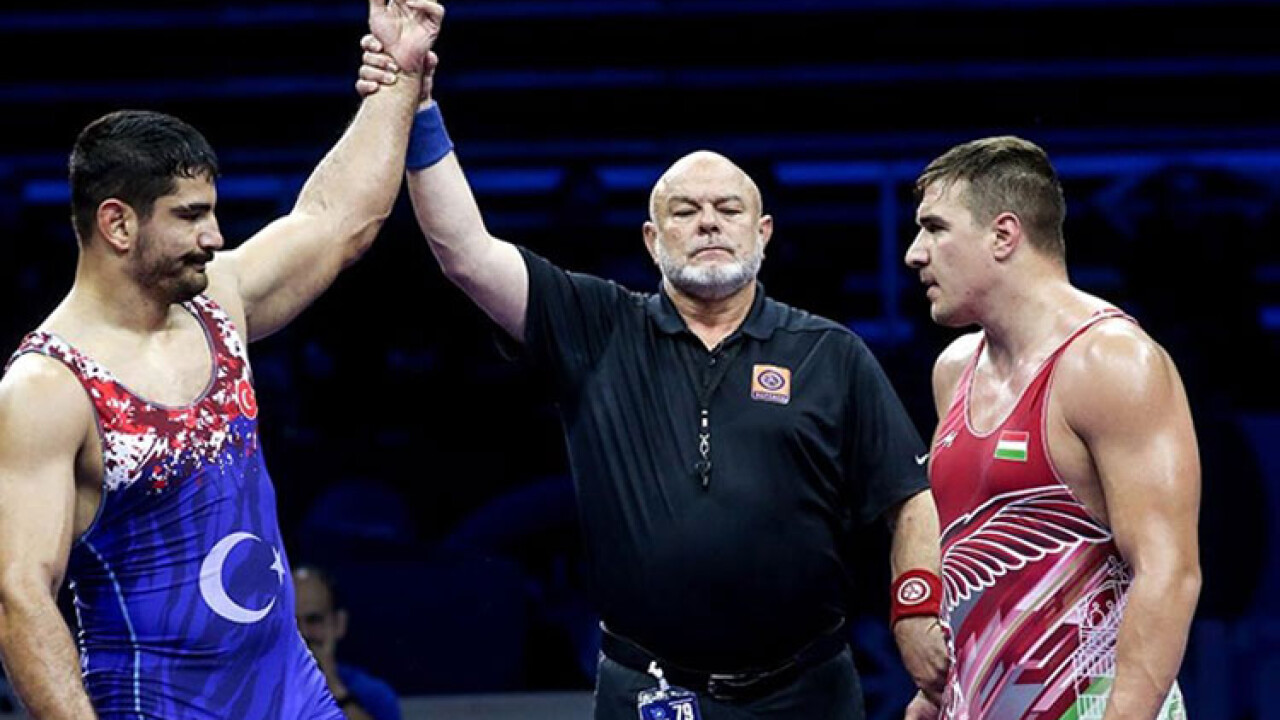 Olimpiyat şampiyonu güreşçi Taha Akgül, müsabakada Ligeti'yi 5-0 mağlup etti.