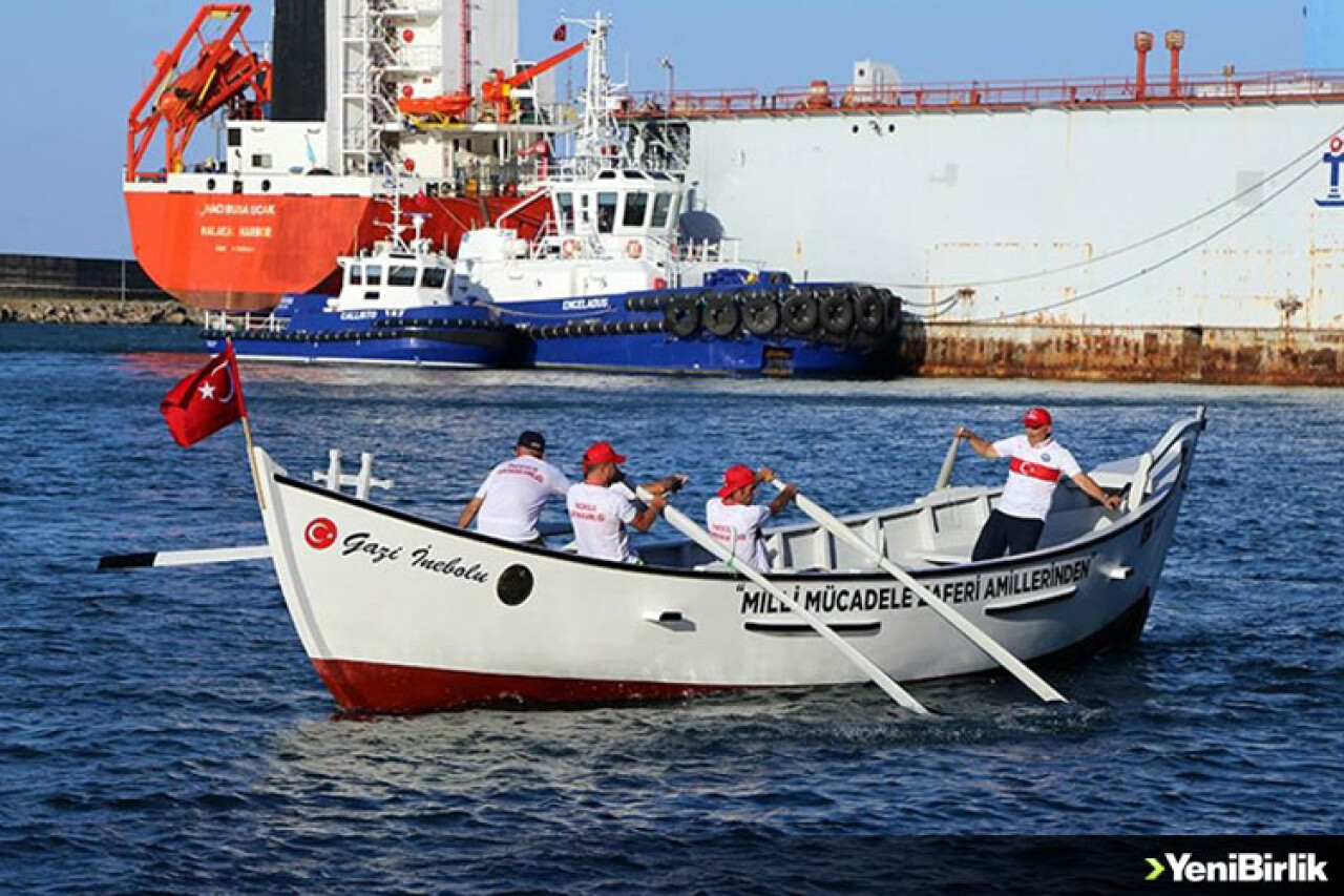 Konuşmaların ardından "Gazi İnebolu" isimli ve 2 çifte kürekli kayık denize indirildi.