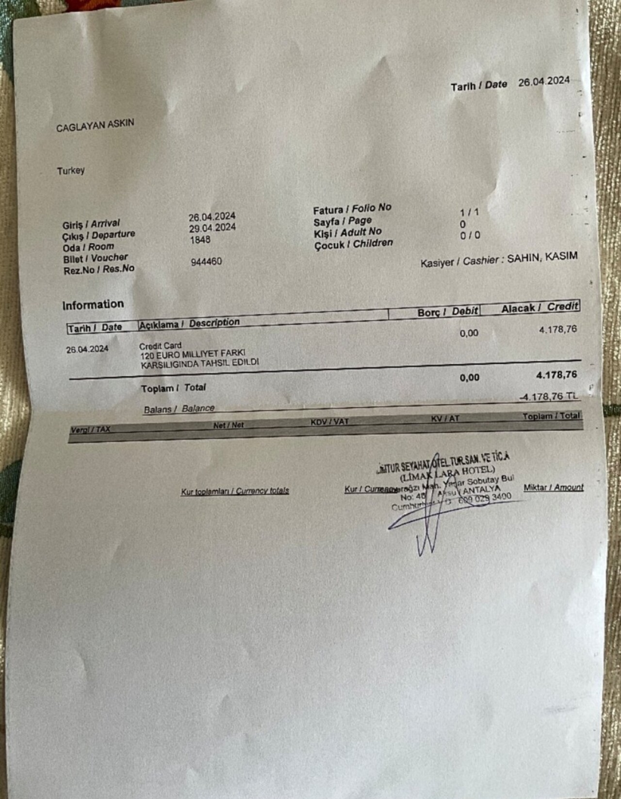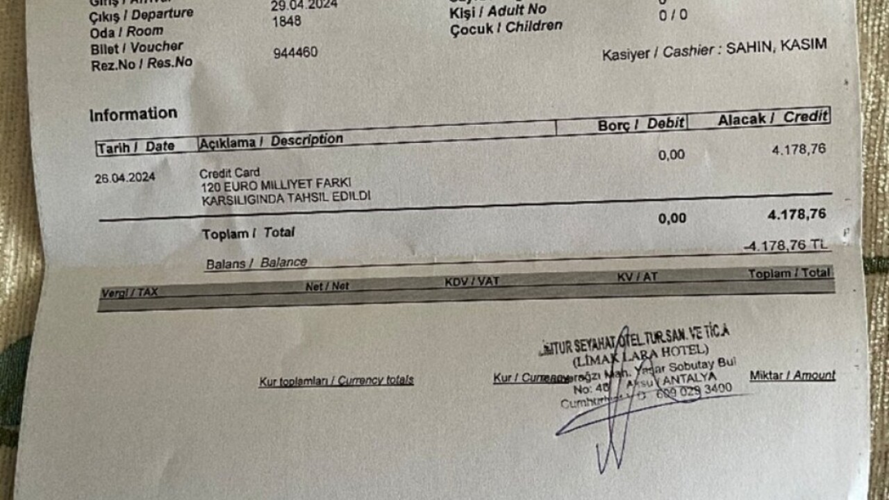 Antalya'da bulunan Limak grubuna ait Limak Lara Deluxe Hotel'in İngiltere'deki bir site üzerinden rezervasyon yaptıran müşterinin Türk olduğu fark edilince 120 Euro 'milliyet farkı ücreti' aldığı iddia edildi.