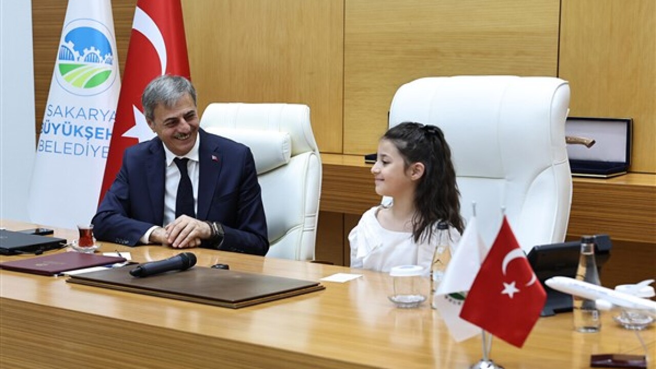 23 Nisan Ulusal Egemenlik Çocuk Bayramı, Sakarya'da her yıl olduğu gibi bu yıl da Büyükşehir'de yapılan devir teslim töreniyle başladı. Başkan Yusuf Alemdar, bu sabah makamında İl Milli Eğitim Müdürlüğü'nden eğitimci ve öğrenci heyeti ağırladı. Mehmet Demir İlkokulu'nda öğrenim gören 4. sınıf öğrencisi Ece Atay, bayram dolayısıyla Büyükşehir Belediyesi'nin başkanlık koltuğuna oturdu.
