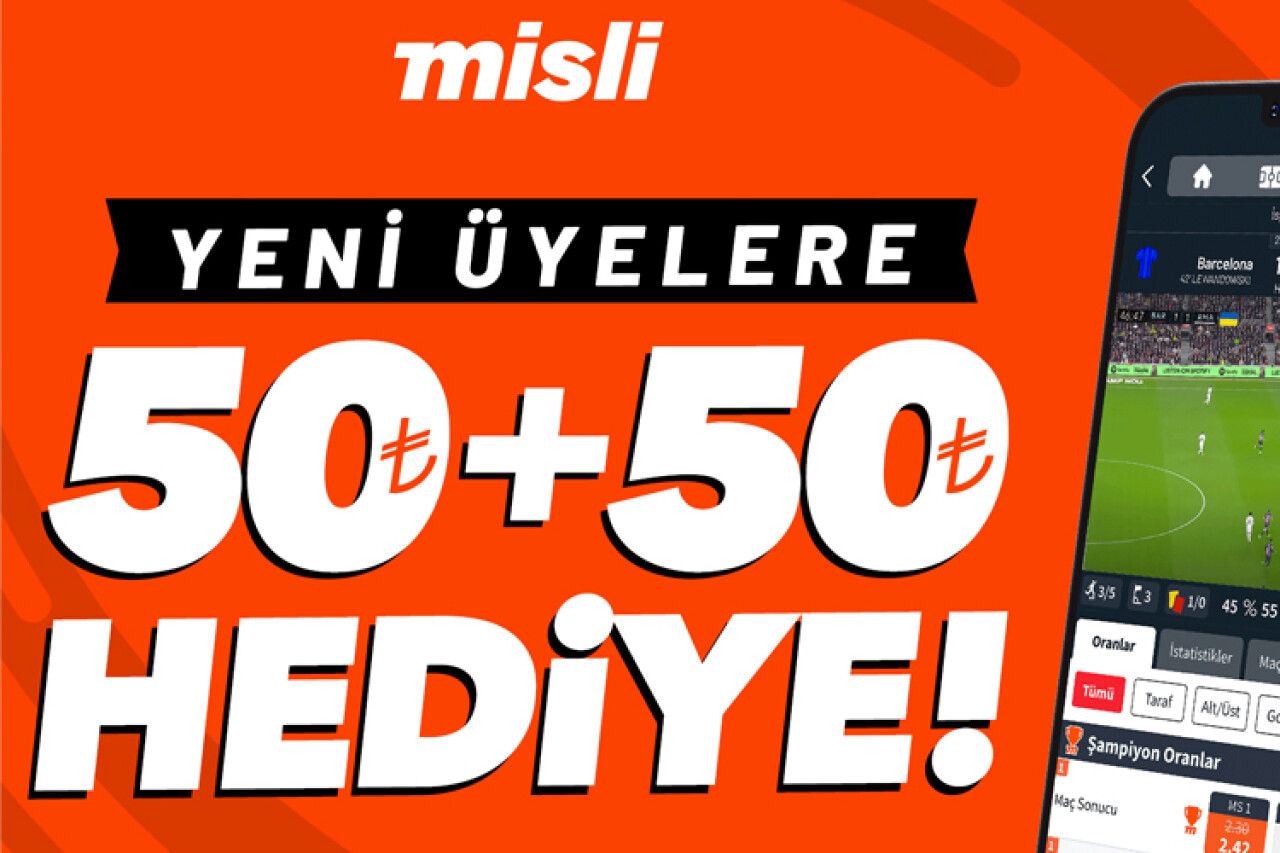 “Misli’ye özel normalin üzerinde Şampiyon Oranlar” ile spor severlerin heyecanına ortak olan Misli, yeni üyelere koşulsuz 50 TL bonus hediyesi ile birlikte “Toplam 100 TL’lik iddaa Kuponuna 50 TL Bonus” kampanyasıyla hoş geldin diyor. Yeni üyelerin koşulsuz olarak faydalandığı “50 TL Bonus” kampanyası “Toplam 100 TL’lik Kuponuna 50 TL Bonus” kampanyasına da otomatik katılım hakkı sağlıyor. 12 Haziran- 31 Temmuz tarihleri arasında geçerli olan kampanyadan Misli mobil uygulamalarını kullananlar ve internet sitesi kullanıcıları yararlanacak.
