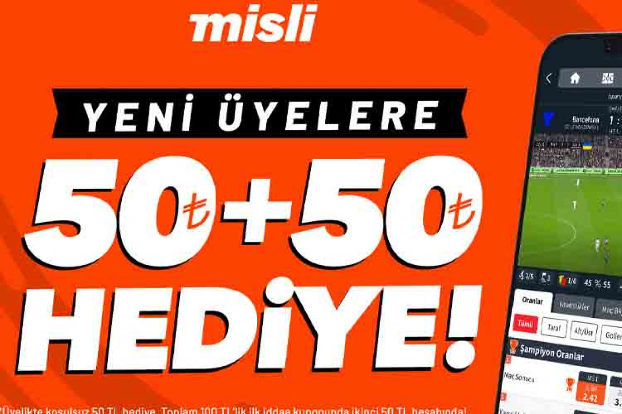 “Misli’ye özel normalin üzerinde Şampiyon Oranlar” ile spor severlerin heyecanına ortak olan Misli, yeni üyelere koşulsuz 50 TL bonus hediyesi ile birlikte “Toplam 100 TL’lik iddaa Kuponuna 50 TL Bonus” kampanyasıyla hoş geldin diyor. Yeni üyelerin koşulsuz olarak faydalandığı “50 TL Bonus” kampanyası “Toplam 100 TL’lik Kuponuna 50 TL Bonus” kampanyasına da otomatik katılım hakkı sağlıyor. 12 Haziran- 31 Temmuz tarihleri arasında geçerli olan kampanyadan Misli mobil uygulamalarını kullananlar ve internet sitesi kullanıcıları yararlanacak.
